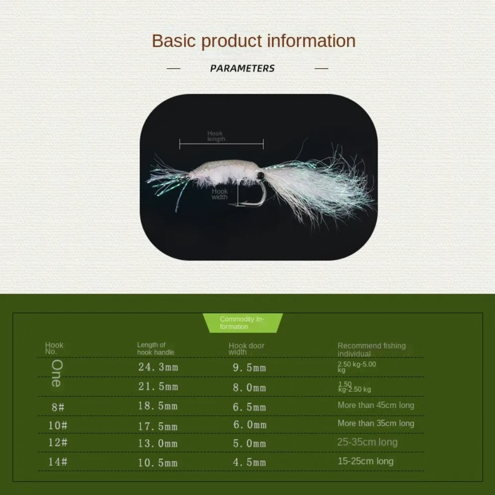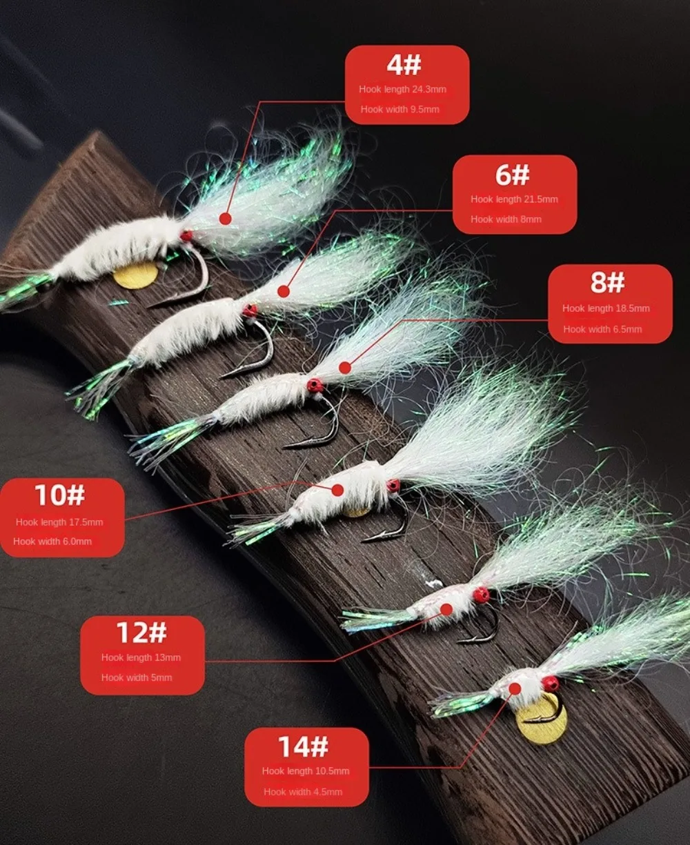 5.Moscas bien atadas por niveles experimentados.Las moscas de los camarones imitan una de las fuentes de forraje más habituales en agua salada.Estas fuentes alimenticias con alto contenido de proteínas son clave para muchas especies de peces de agua salada.Las moscas de los camarones son eficaces para los peces hueso, los permisos, los peces enrojeces e incluso las carpas en agua dulce.Si pescas las zapatillas, entonces es imprescindible una buena selección de moscas de los camarones.