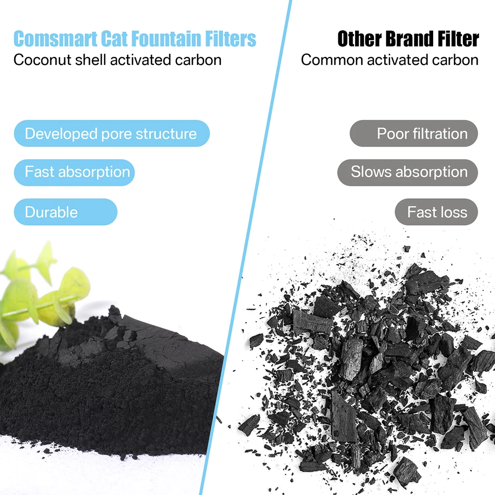 Cada filtro consta de una capa de algodón, carbón activado, cáscara de coco y una resina de intercambio iónico con rejillas de ABS.Puede eliminar eficazmente las impurezas, filtrar el cabello, los olores, suavizar el agua y obtener un mejor sabor del agua.Deja que tu mascota beba agua limpia.