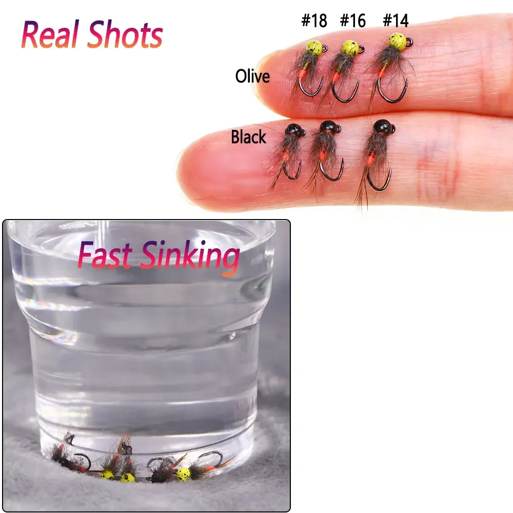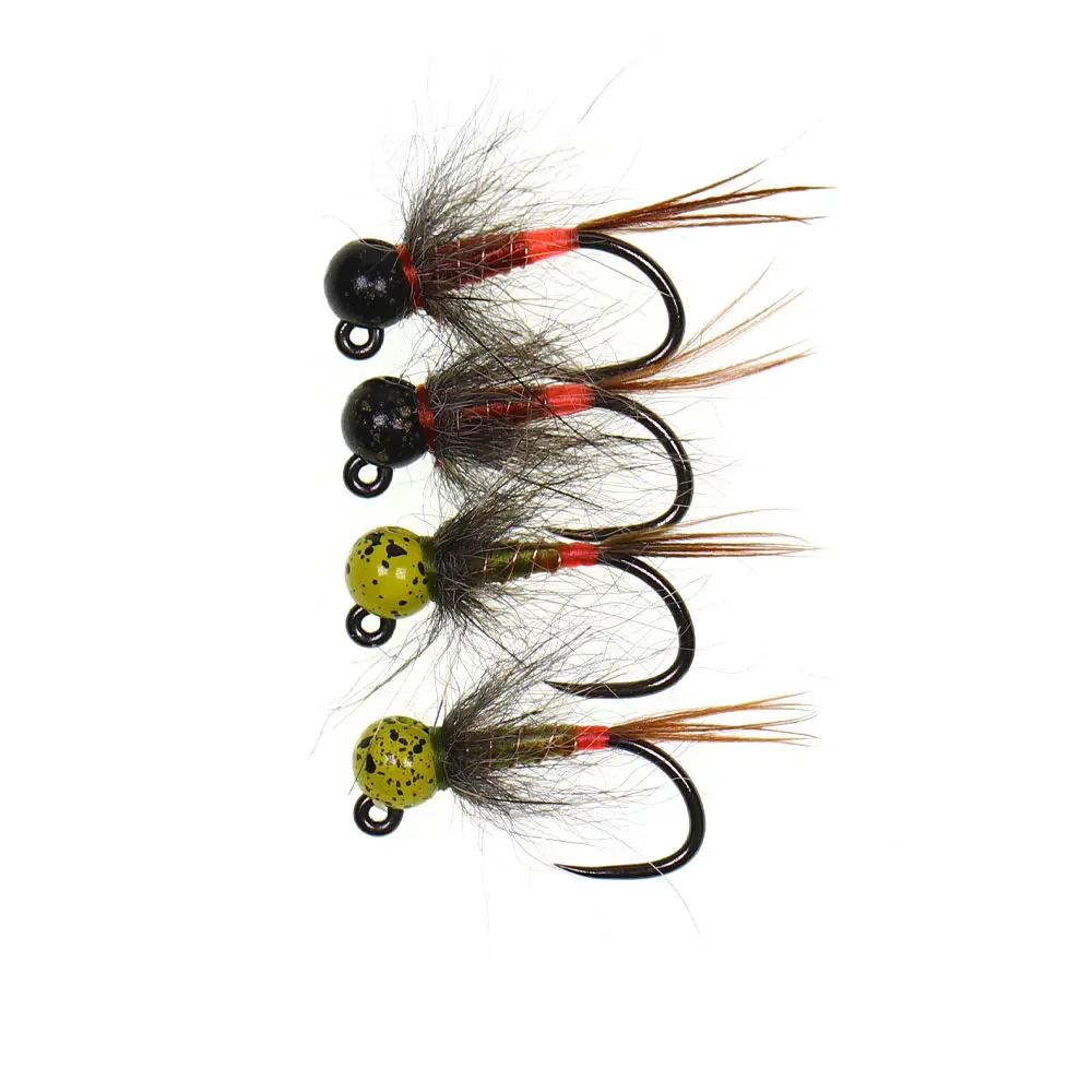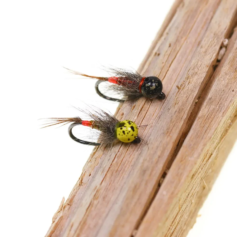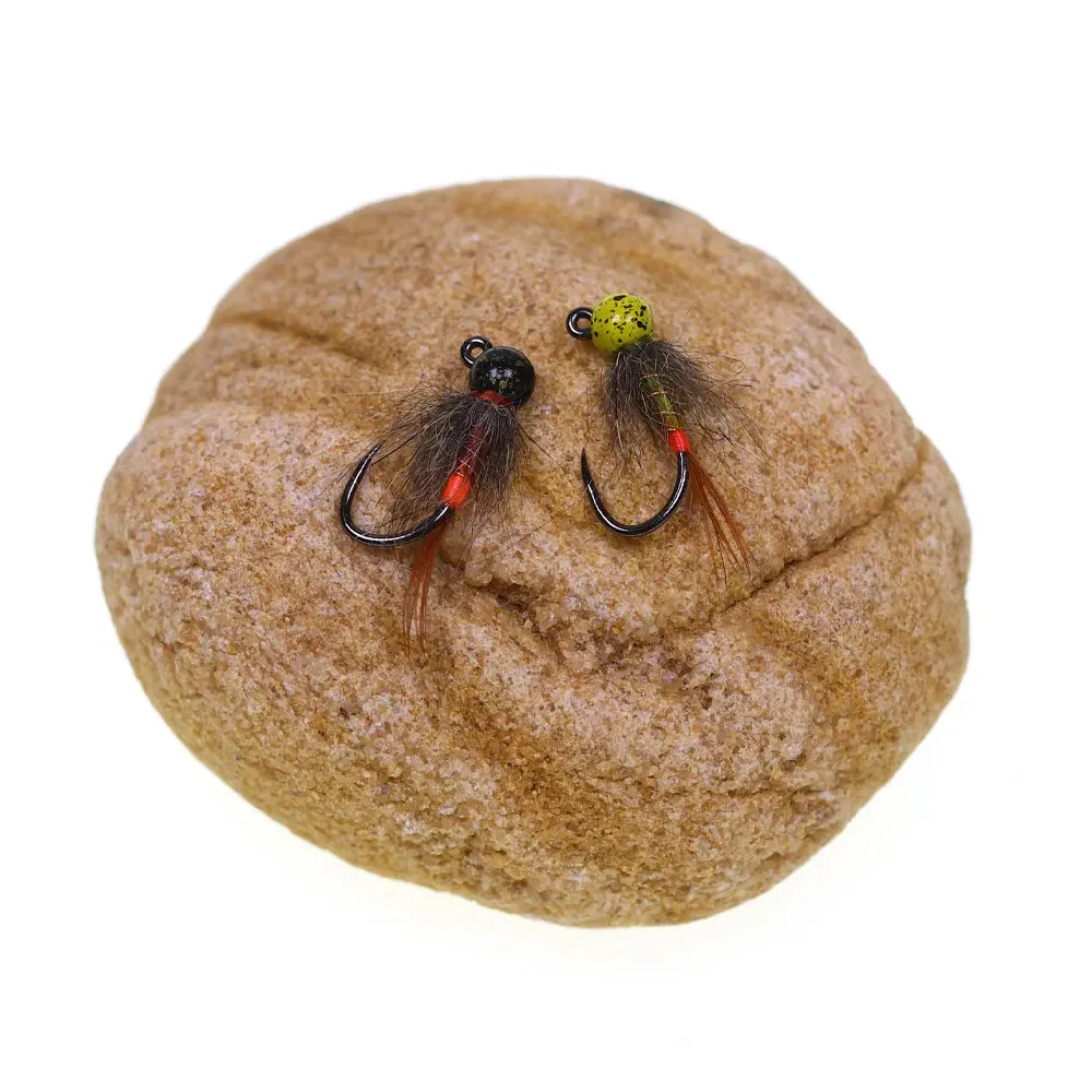 El Mottled Barbless Jig Nymph Fly es un patrón de ninfa ponderado altamente efectivo diseñado para hundirse rápidamente e imitar insectos acuáticos como moscas, caddisflies o moscas de piedra.Estas ninfas se hunden rápidamente y cuentan con ganchos de cabeza blanda y la mayoría cuentan con cuentas de plantilla con peso.La perla de plantilla molteada brinda una perspectiva más natural a los insectos. Si bien se usan comúnmente como moscas de ninfas de estilo europeo, estos patrones también son muy efectivos bajo indicadores de golpe o moscas secas.Tienen a deslizarse sobre las rocas y minimizar los enganches aunque son pesados y entren en contacto frecuente con el fondo.También es mucho más probable que enganche la trucha en el labio superior, dando al pescador más control y una mayor capacidad para pescar la trucha.