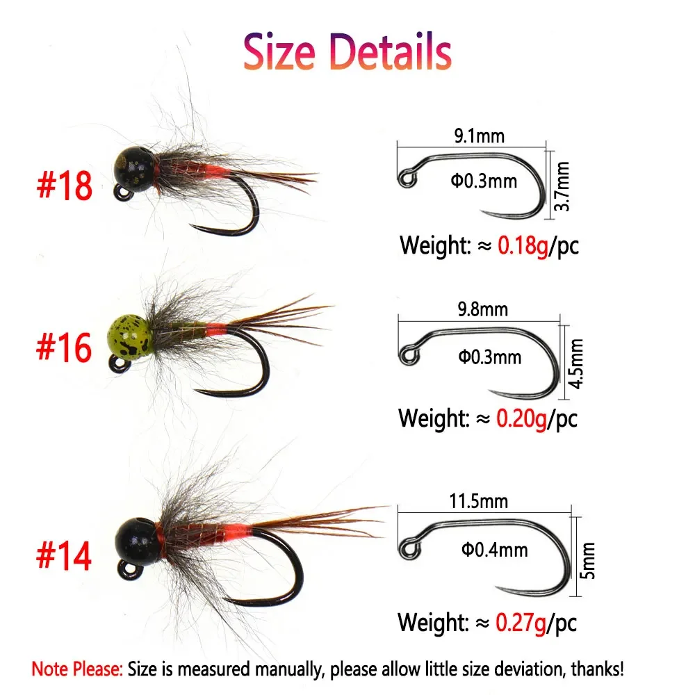 4 piezas#14#16#18 cabeza de cuentas moleteadas, plantilla sin púas, ninfa de hundimiento rápido, cola de faisão, ninfa Euro húmeda, trucha, panfish, Señuelos de pesca