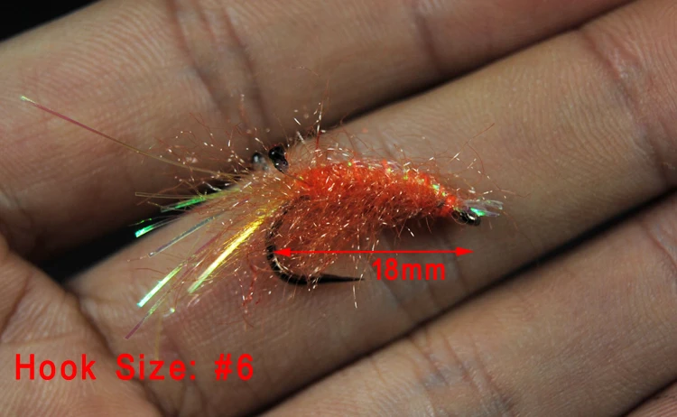 4 piezas #6, señuelos de cebo de camarón Artificial, para pesca con mosca, Color naranja