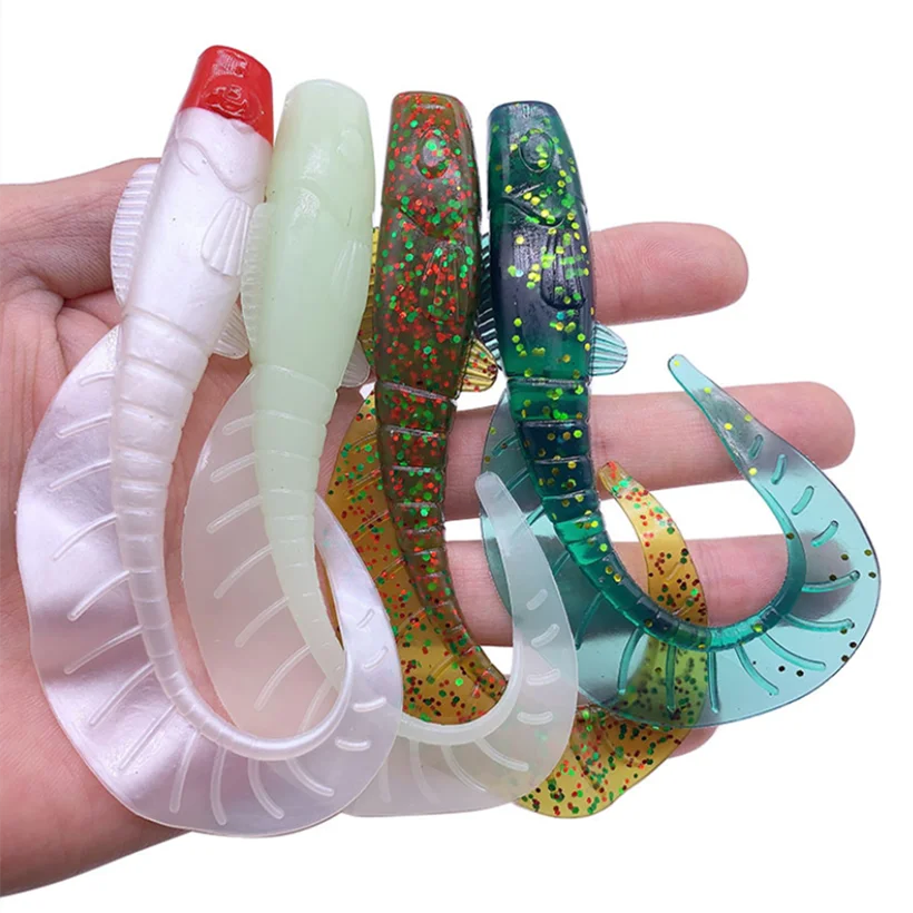 4 Uds 11cm/13g señuelo suave larva gusano cola larga larva manivela Artificial cebo grande Wobbler Swimbait para lubina trucha gusano cebo falso señuelo