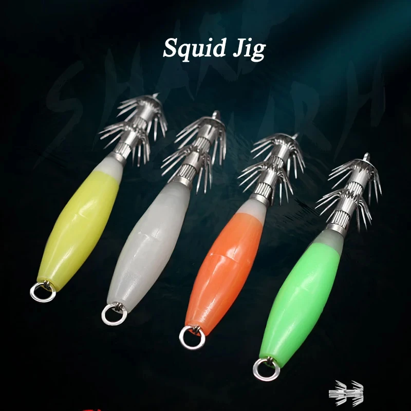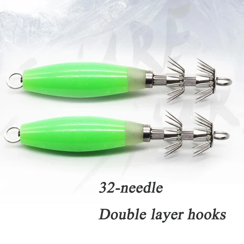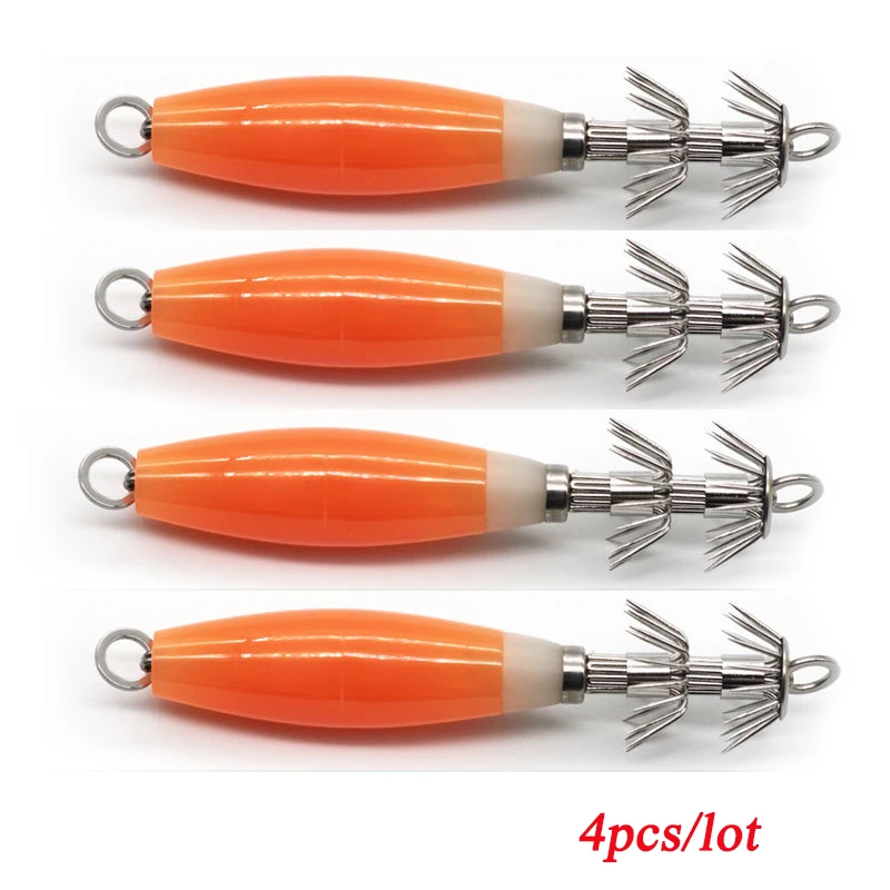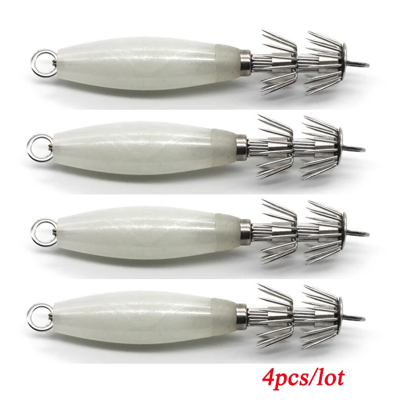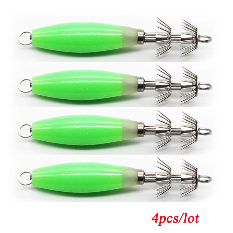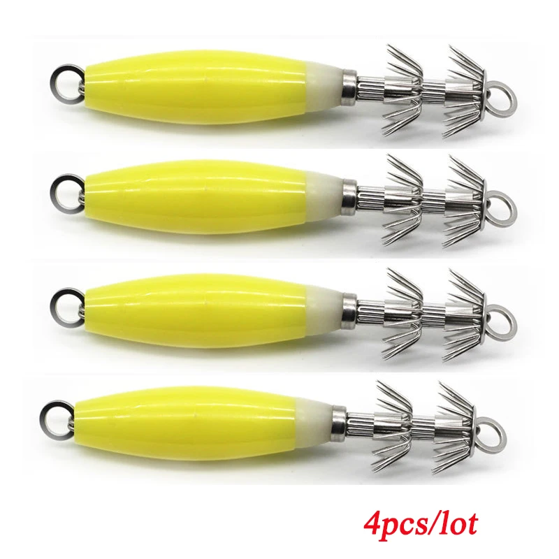 4 Uds 12cm14g 32-aguja Glow calamar Jigs gancho luminoso calamar gancho sepia pesca anzuelo mar Señuelos pesca cebo