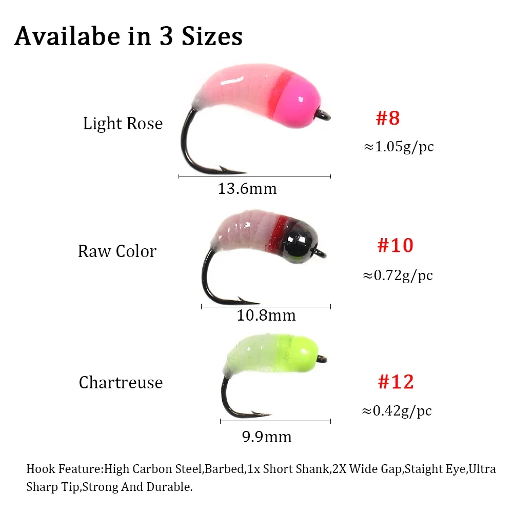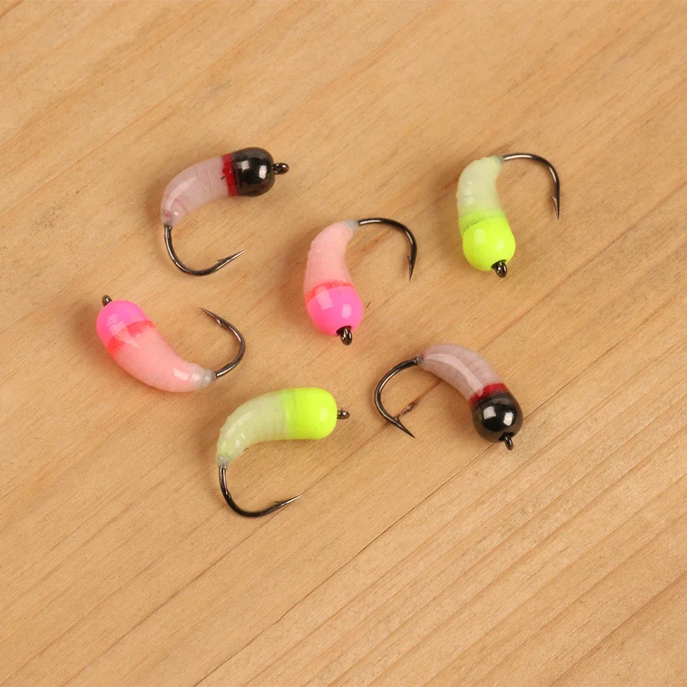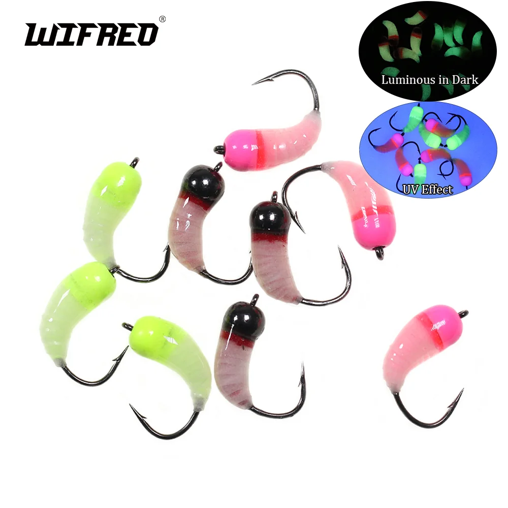 Wifreo 4 Uds/6 Uds pesca en hielo cabeza de cuentas de latón ninfa Scud Bug gusano mosca Caddis larvas mosca húmeda cebos de insectos trucha lubina señuelo de pesca cebos