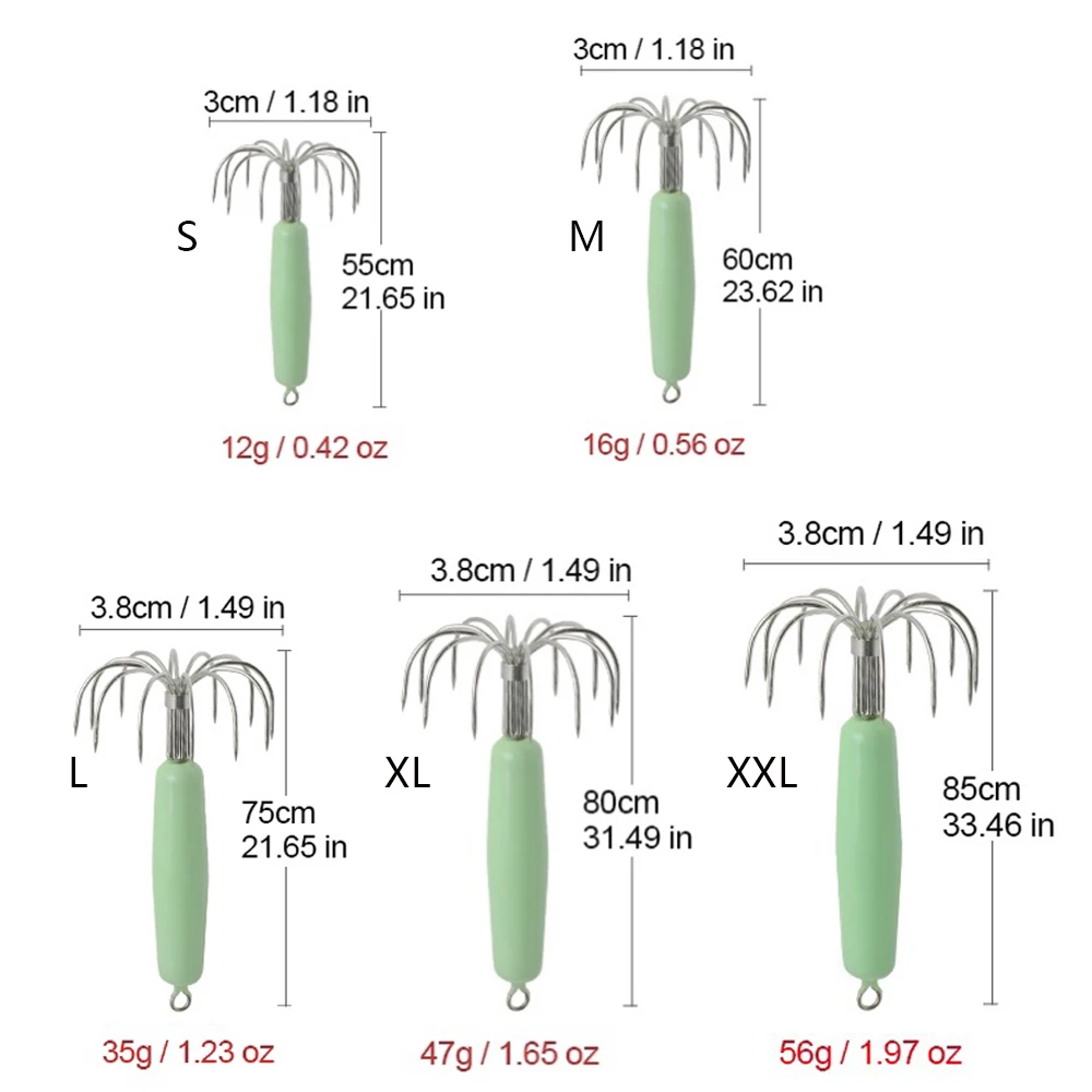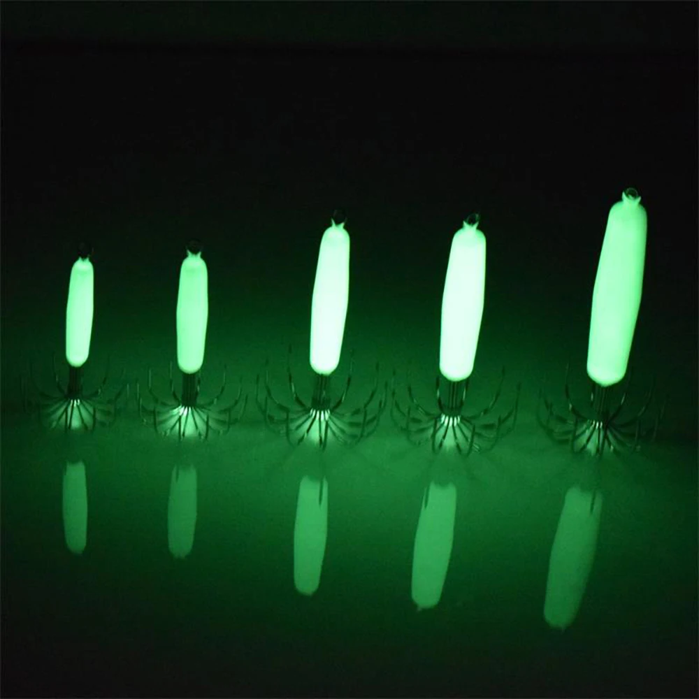 4 Uds. De alta calidad, gancho de calamar luminoso importado japonés, tubo de soplado, cebo falso fluorescente para matar calamar y pulpo