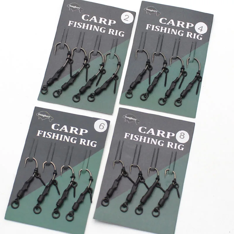 Anzuelo de pesca de carpa de 4, anzuelo de carpa con púas recubierto de PTEF, anzuelo de aparejo Ronnie atado listo, enlaces de gancho de pelo Combi Chod Rig 2 4 6 8