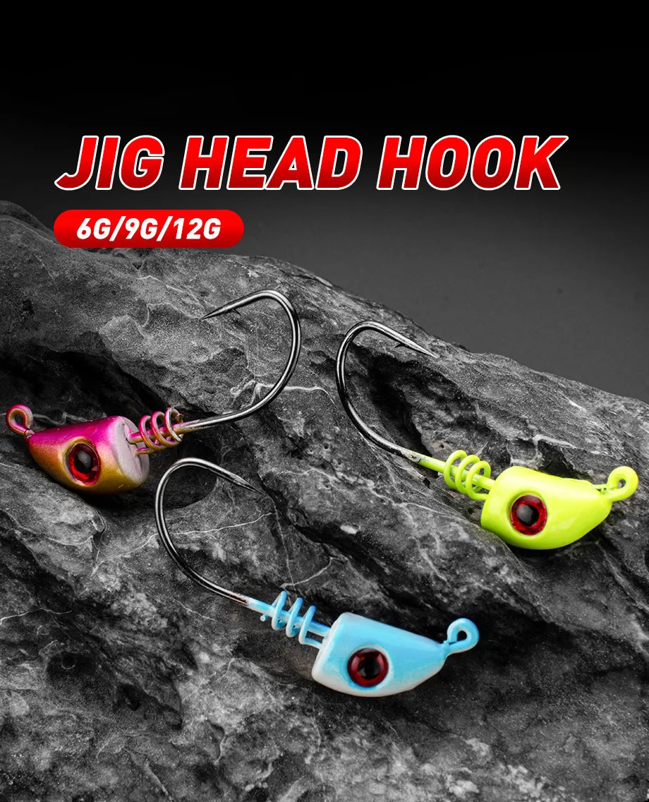 4 Uds. Anzuelos de pesca Testar Jig Head 6g 9g 12g Señuelos de pesca hundimiento giratorio lentejuelas cucharas de Metal anzuelos de cebo blando lubina BlackFish