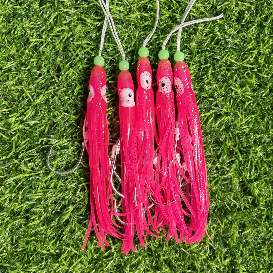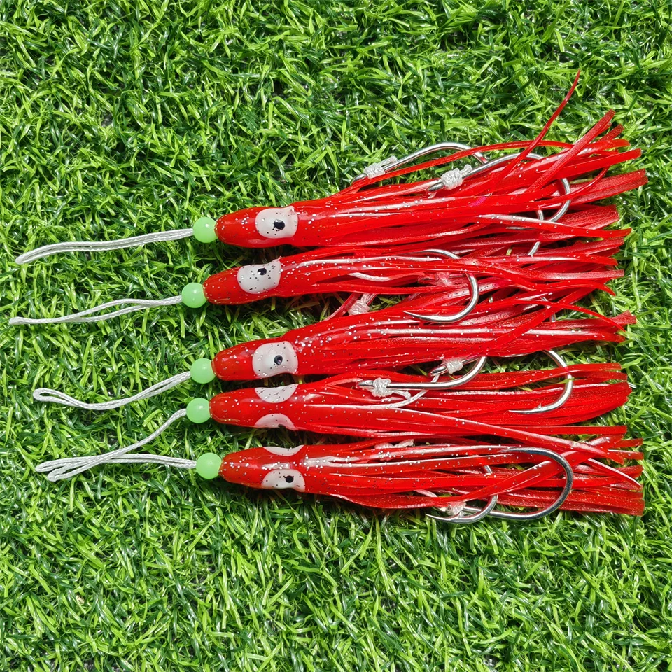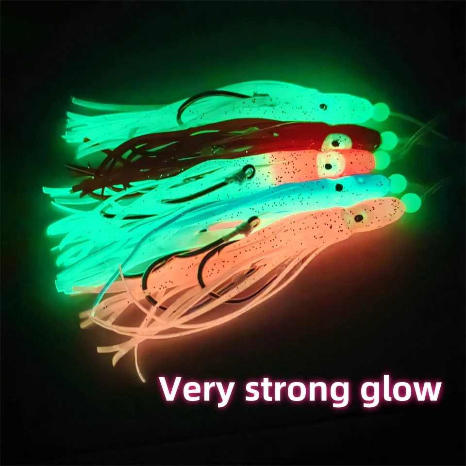 4 Uds calamar suave 11cm 7,2g falda de gel de silicona tentáculo 15 # Anzuelo de doble asistencia, aparejo de anzuelo de señuelo, aparejos de pesca, pesca en agua salada