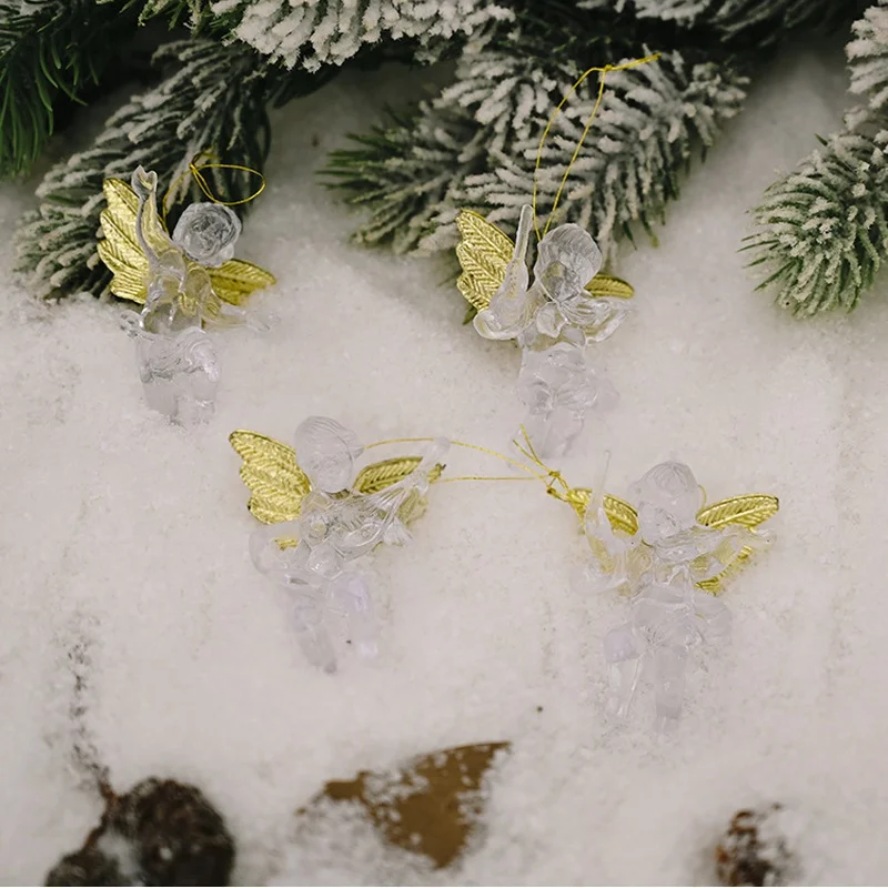 4 Navidad transparente Ángel colgante creativo nuevo pequeño ángel colgante árbol de Navidad ornamentoCaracterísticas: