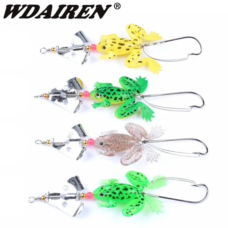 4 Uds cuchara giratoria de Metal Rana juego de señuelos blandos lentejuelas 5,8g 9cm hoja giratoria Fiy Señuelos de pesca Wobblers aparejos de cebo