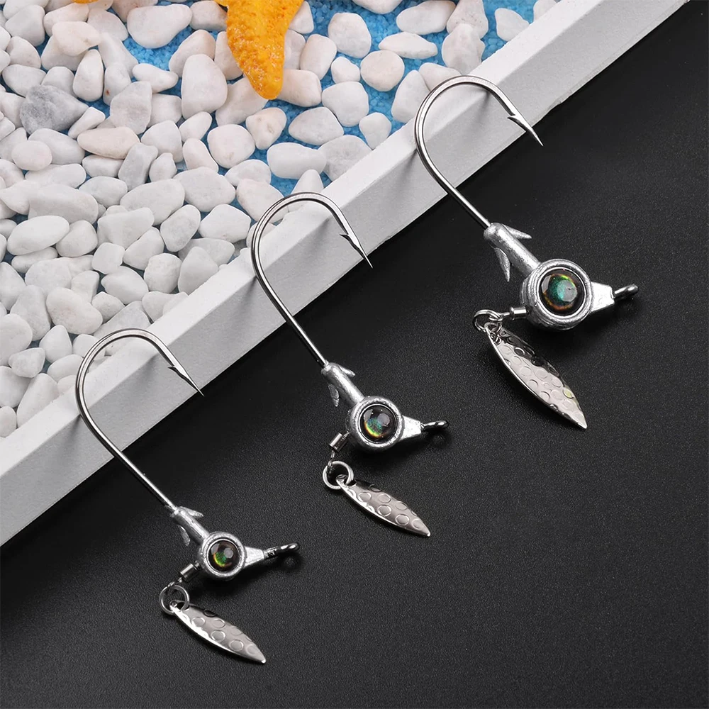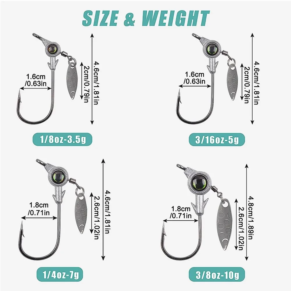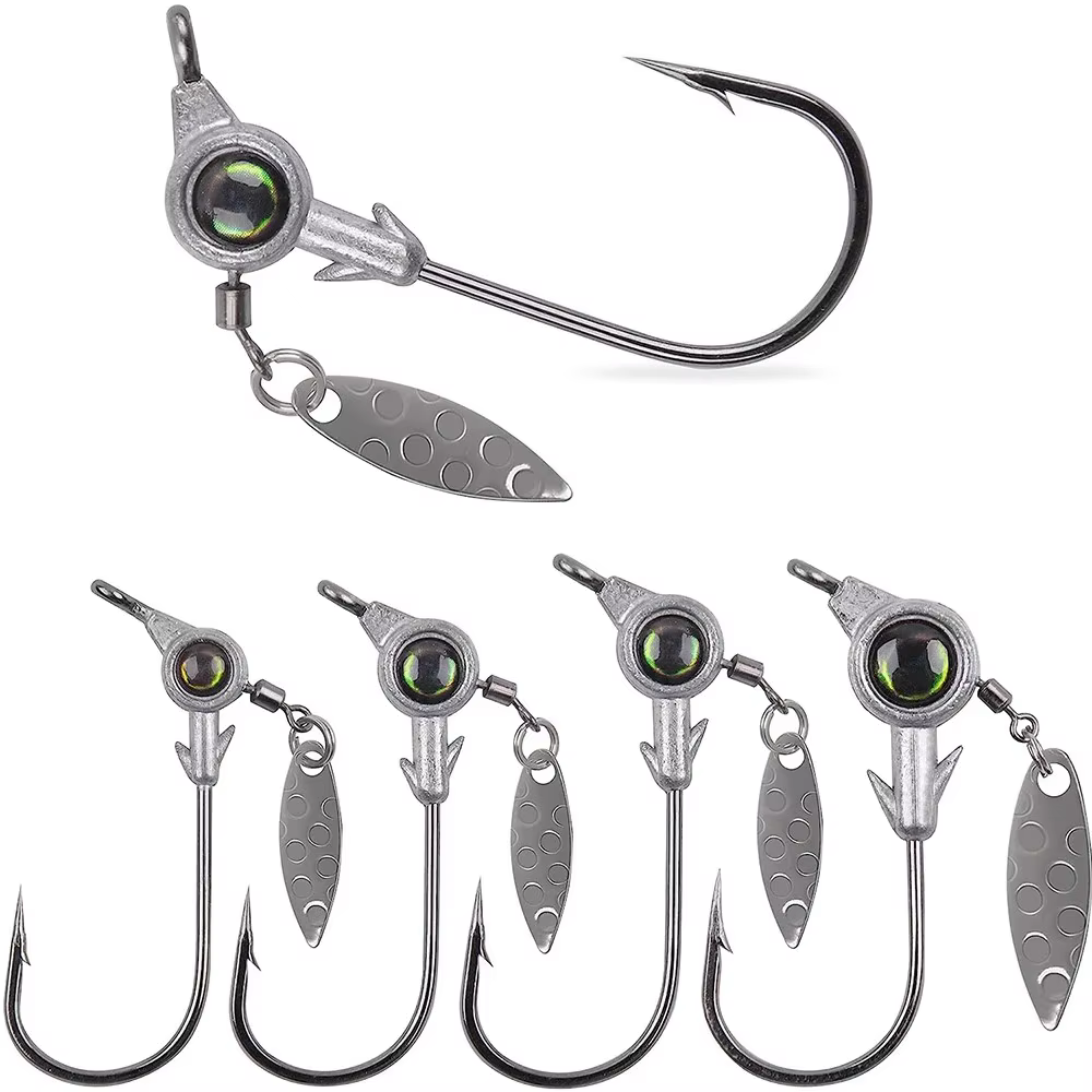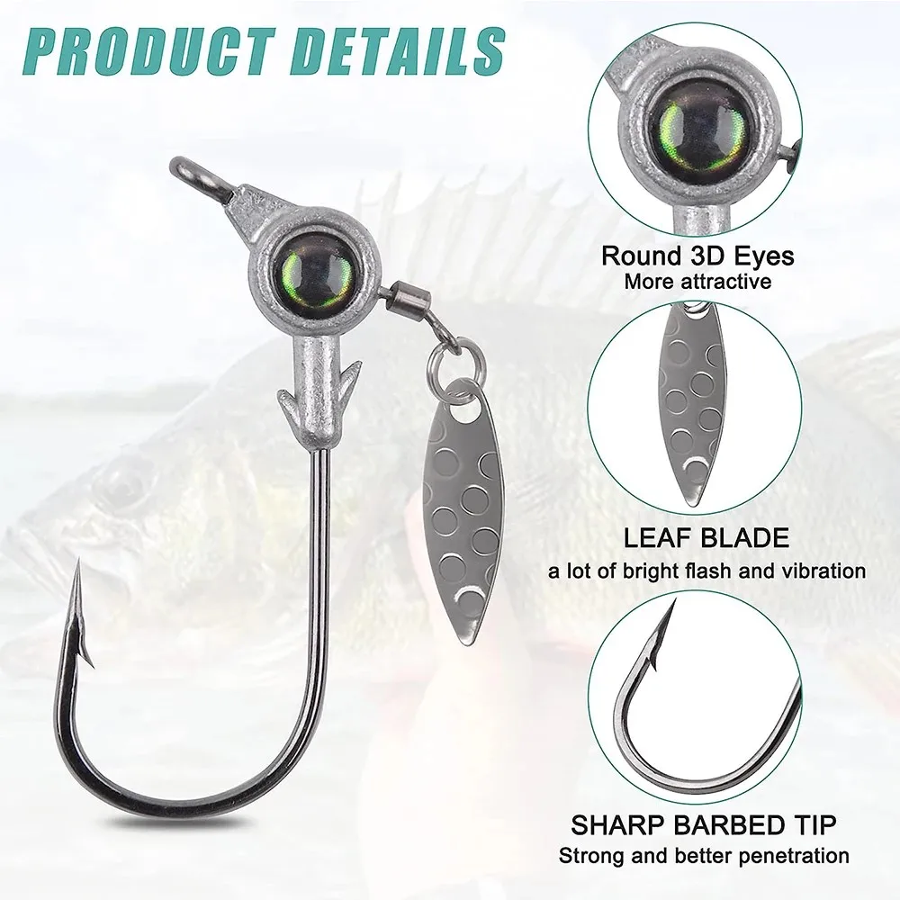 DISEÑO ATRACTIVO: Las cabezas de anzuelo Crappie están diseñadas con ojos grandes y brillantes y una hoja de hoja de sauce, lo que hace que las plantillas de pesca sean más atractivas.hoja giratoria 360°Girando en el agua, proporcionando un gran destello brillante y vibración para atraer a los depredadores hambrientos a atacar.