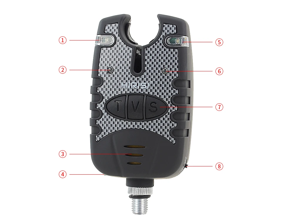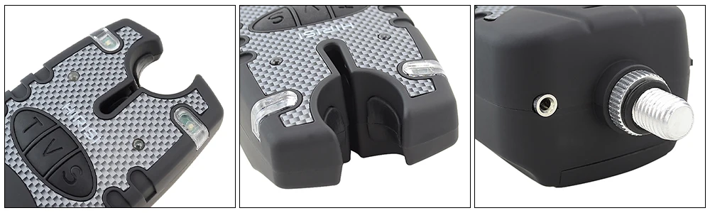 Esta alarma de mordida tiene un nuevo estilo con volumen, tono y sensibilidad ajustables, produce una señal de alarma por altavoz de alta salida y LED parpadeante rojo cuando los peces pican.