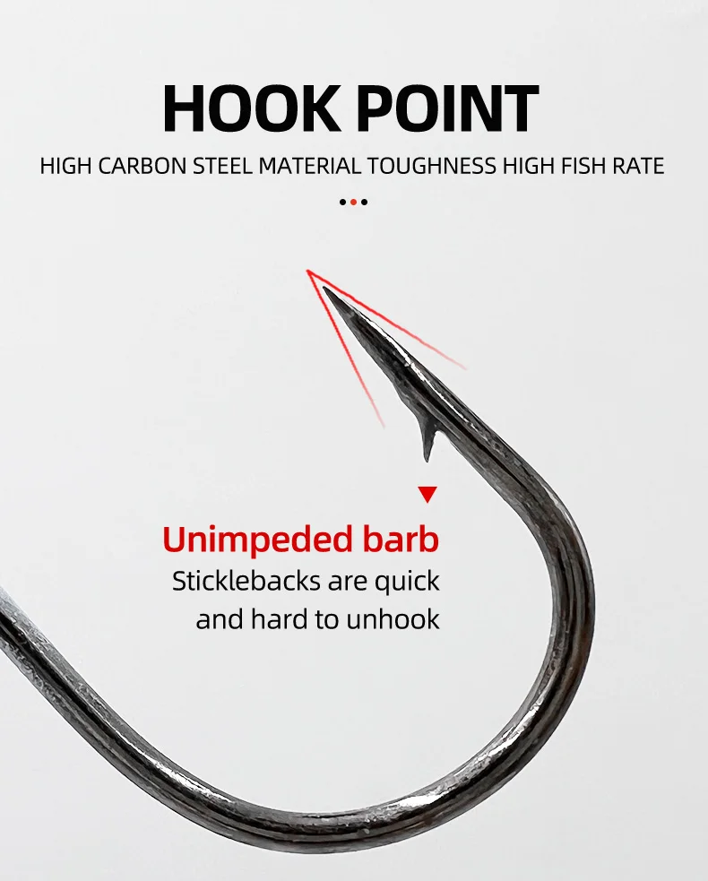 【Diseño de púas】 Hemos actualizado un mejor rendimiento y fijamos una púas en el anzuelo, lo que puede ayudar mejor a los pescadores en la pesca y evitar que los peces se escapen.Hemos realizado muchas pruebas con esto y la tasa de bits de este anzuelo es mucho mayor que la de los anzuelos tradicionales.