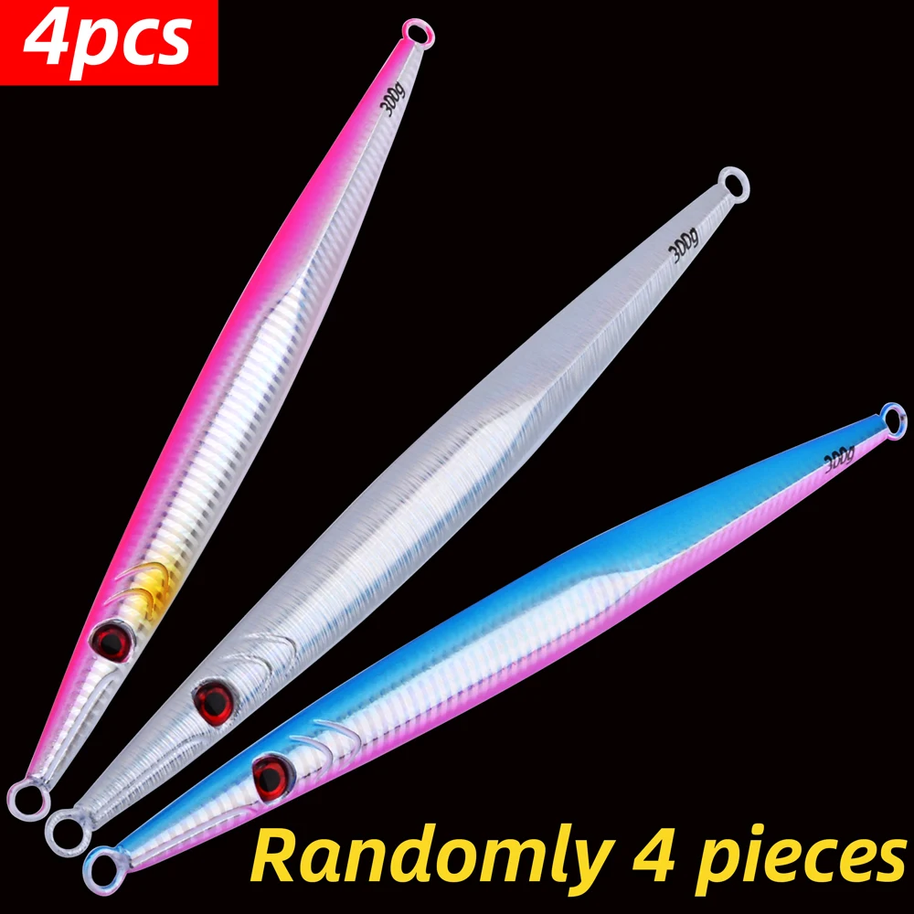 4 Uds Metal Jigging hundimiento rápido 60G 80G 160G 250G 300G plantilla de Metal luminosa pesca Jigbait cuchara cebos Jig señuelo lápiz plantilla