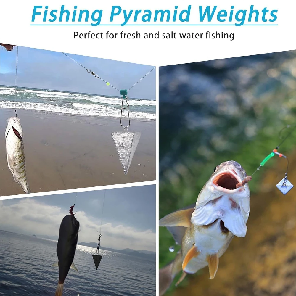 4. Las plomos piramidales son agradables tanto para el lanzamiento de agua dulce como de agua salada, y se adaptan a diversas actividades de pesca, como pesca en tierra, pesca en roca, pesca en barco, aparejos de pesca en surf, etc., adaptables a múltiples entornos de pesca.
