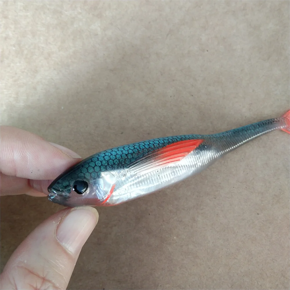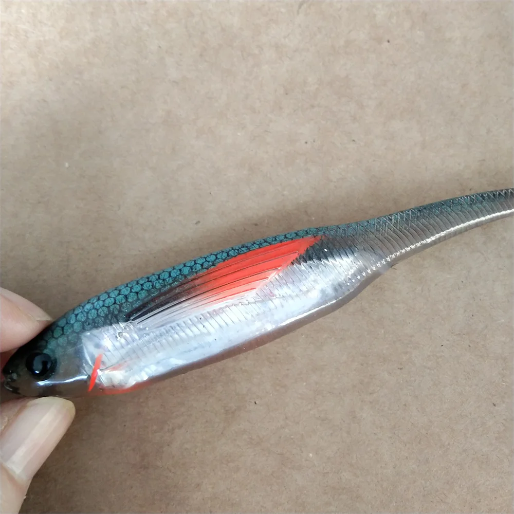 4 unids/lote 12cm 9g pesca cebo suave cola de horquilla pez Señuelos de Pesca Color arcoíris cebo giratorio de pesca