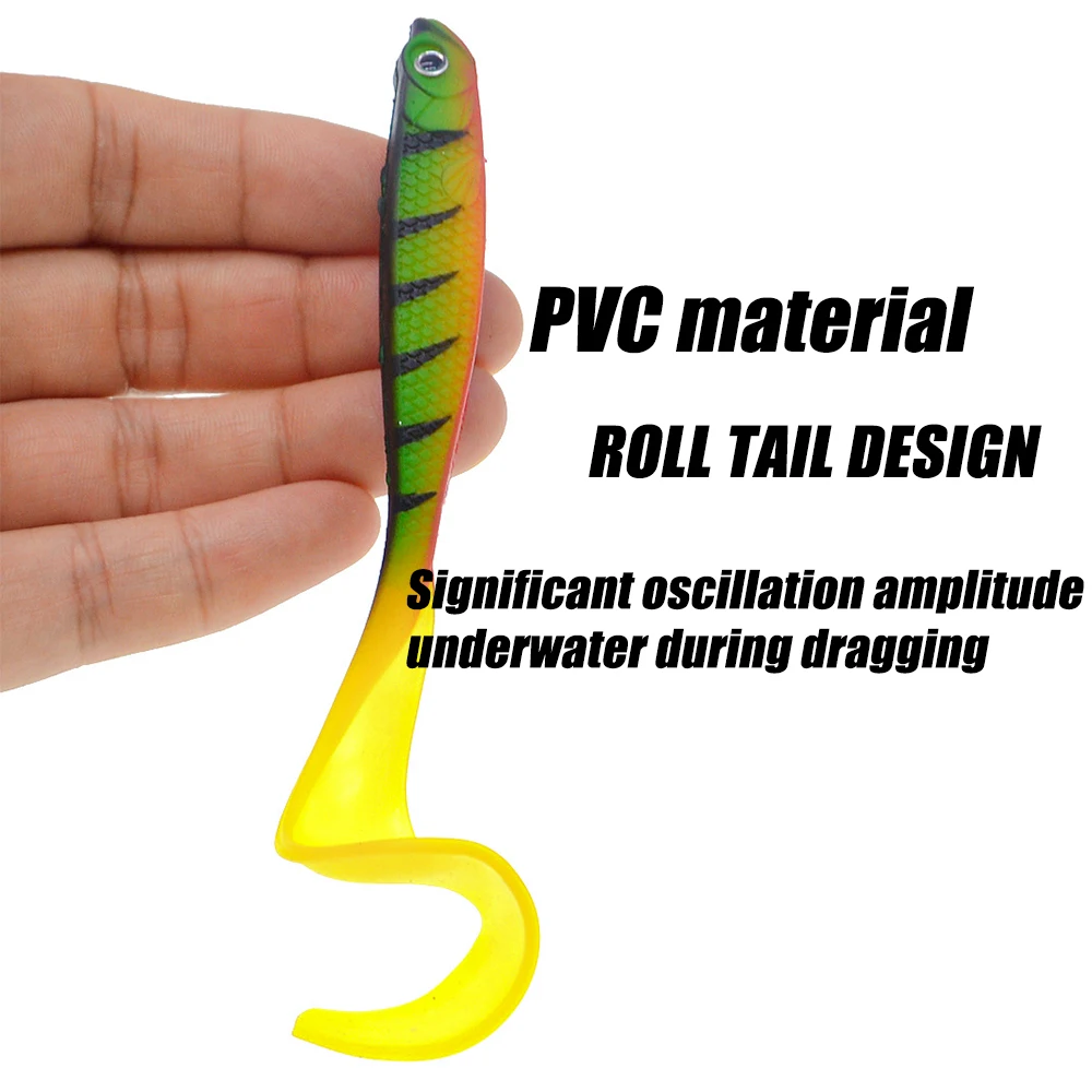 4 unids/lote cebos de gusano blando, cebos de lubina de cola larga, señuelo de pesca realista 4 Uds Jigging Wobblers señuelo de pesca 12,5 cm 55g Shad cola en T