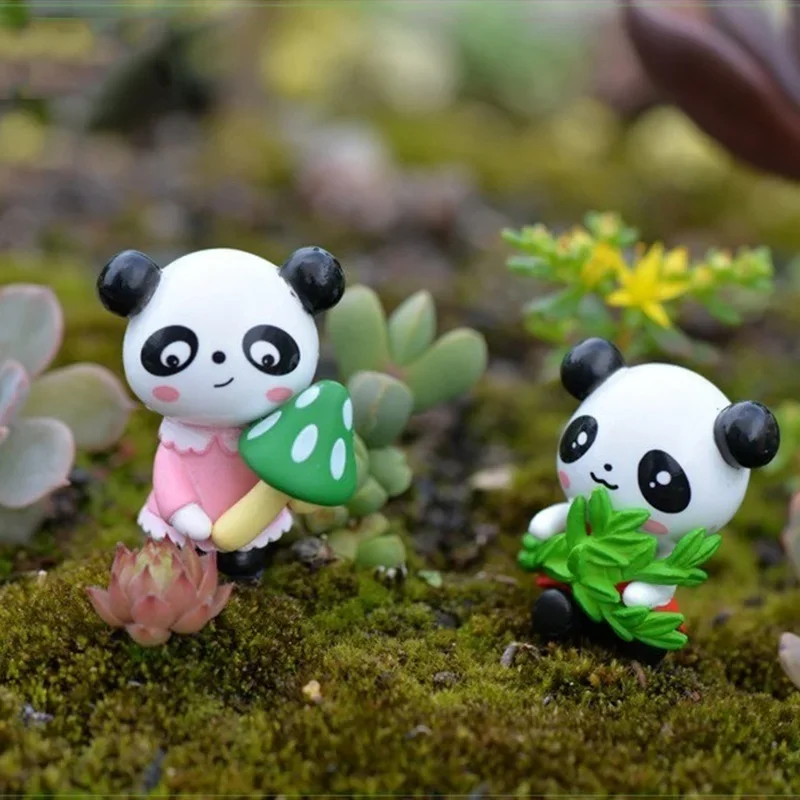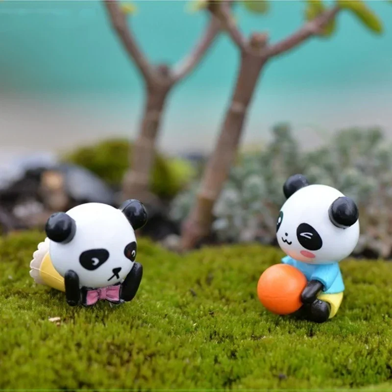 4 unids/lote lindo Mini Panda figuras de animales casa de muñecas juguetes miniaturas/terrario Micro Hada jardín DIY accesorios adornos