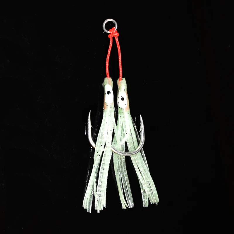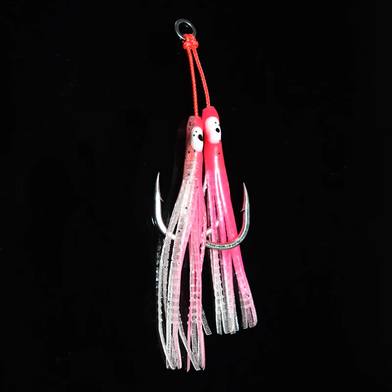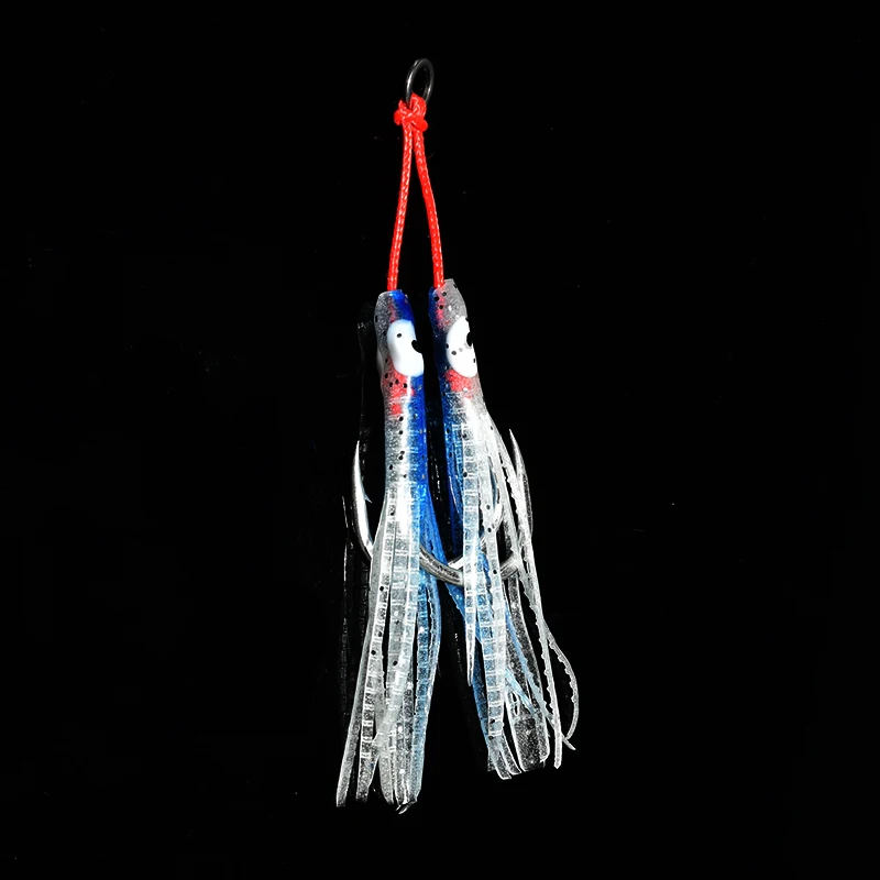 4 unids/lote luminoso pulpo Metal Jig Mate gancho de acero alto en carbono con cinta de silicona auxiliar pesca marina doble anzuelo de Jigging