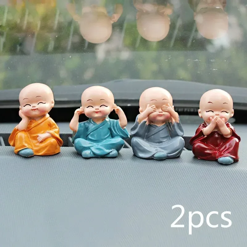 4 unids/set artesanías de resina regalo pequeñas esculturas de monje lindo monjes estatuas de Buda muñecas de Buda creativas decoración de mesa de coche
