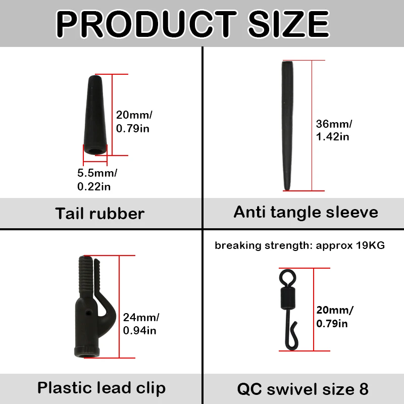 40 piezas de Clip de plomo y cola de goma para pesca de carpa, accesorios para pesca de carpa, aparejos de helicóptero Chod, accesorios de aparejos, Color verde y limo