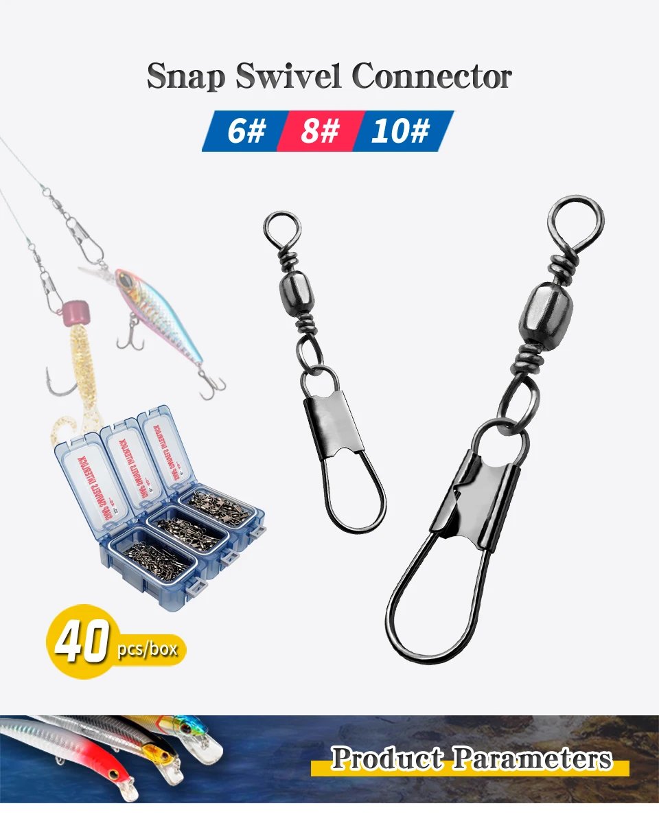 40 piezas de conector de pesca Pin 6 # -10 # Rodamiento de acero inoxidable, accesorios de aparejos de pesca giratorios para anzuelo de señuelo con caja