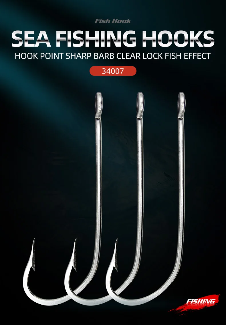 Anzuelo de pesca de agua salada de acero inoxidable 34007 Anzuelo de agua salada de vástago largo