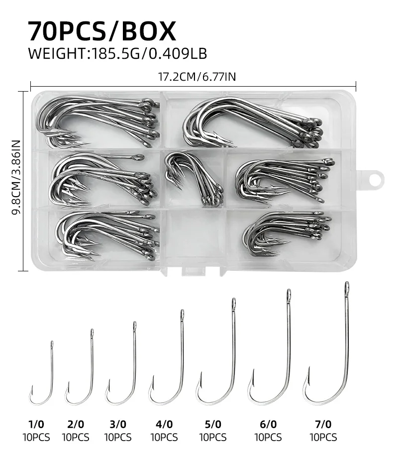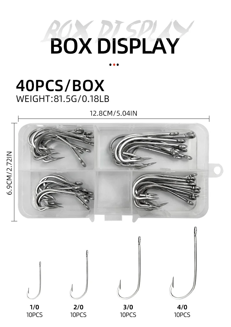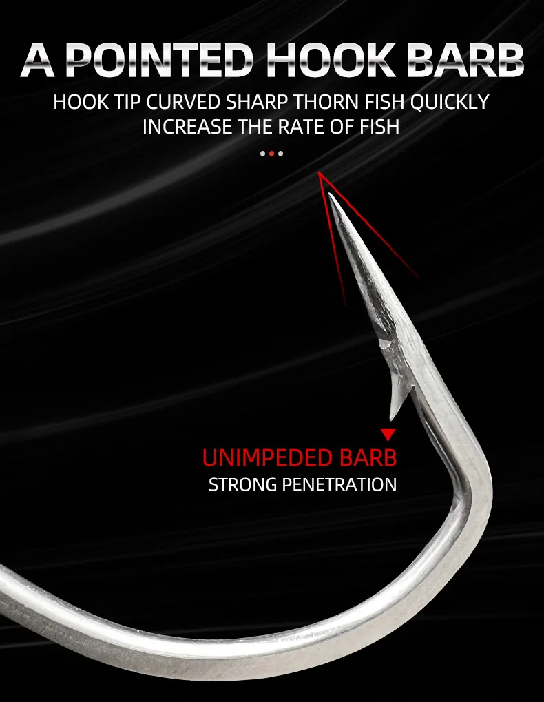 【Ganchos de agua salada】 -【Duradero】-Los anzuelos de pesca están hechos de acero inoxidable 420 para un excelente rendimiento contra el óxido, forjados para una resistencia superior y afilados con aguja para una penetración instantánea.