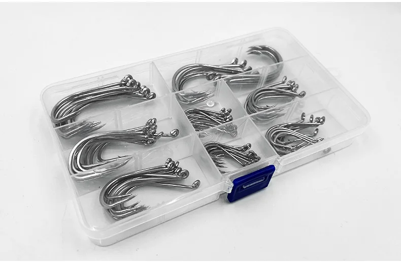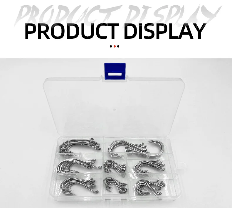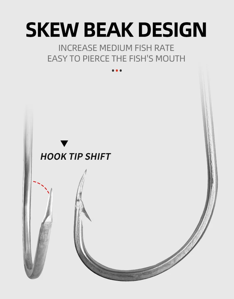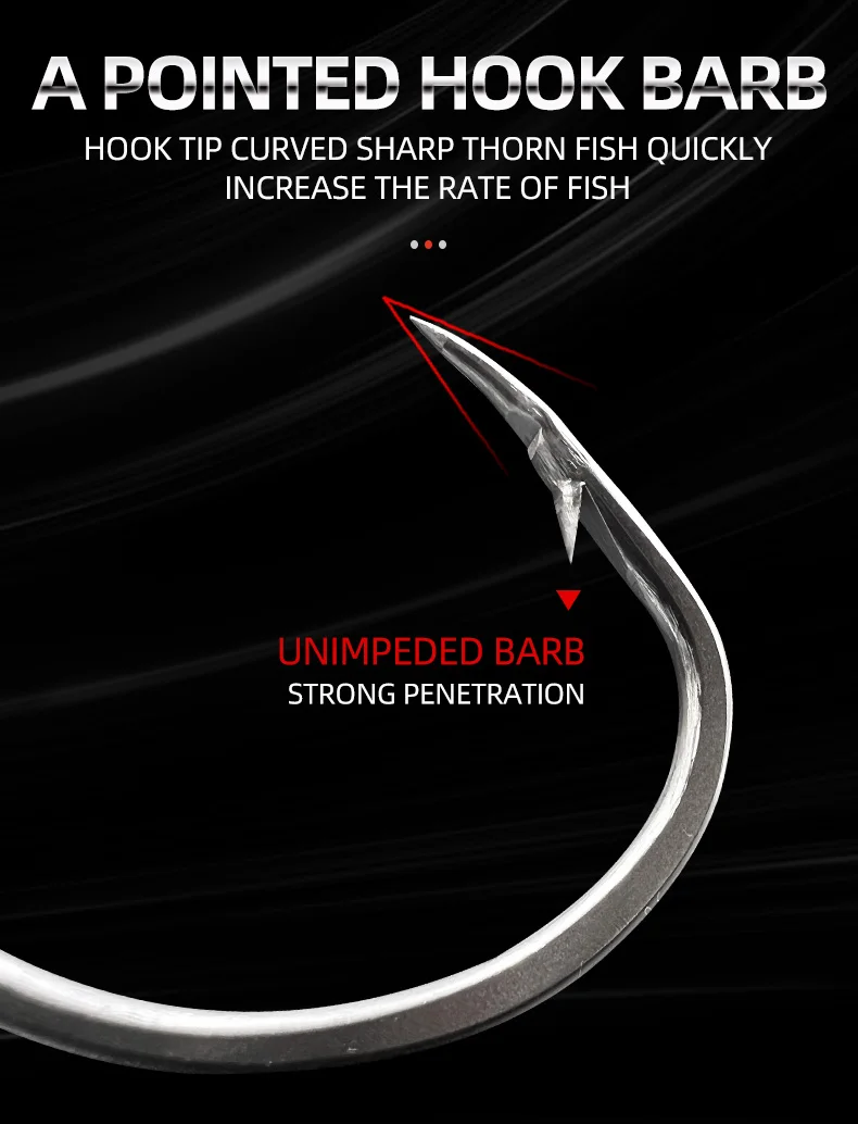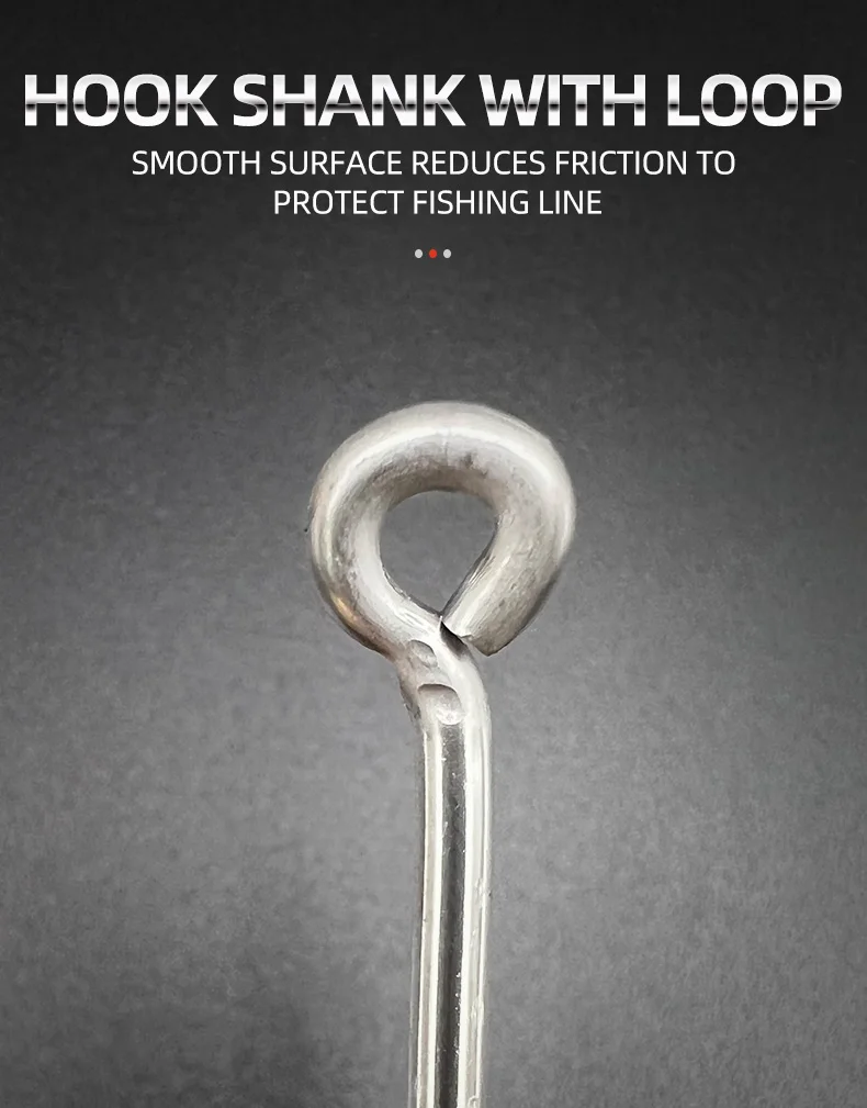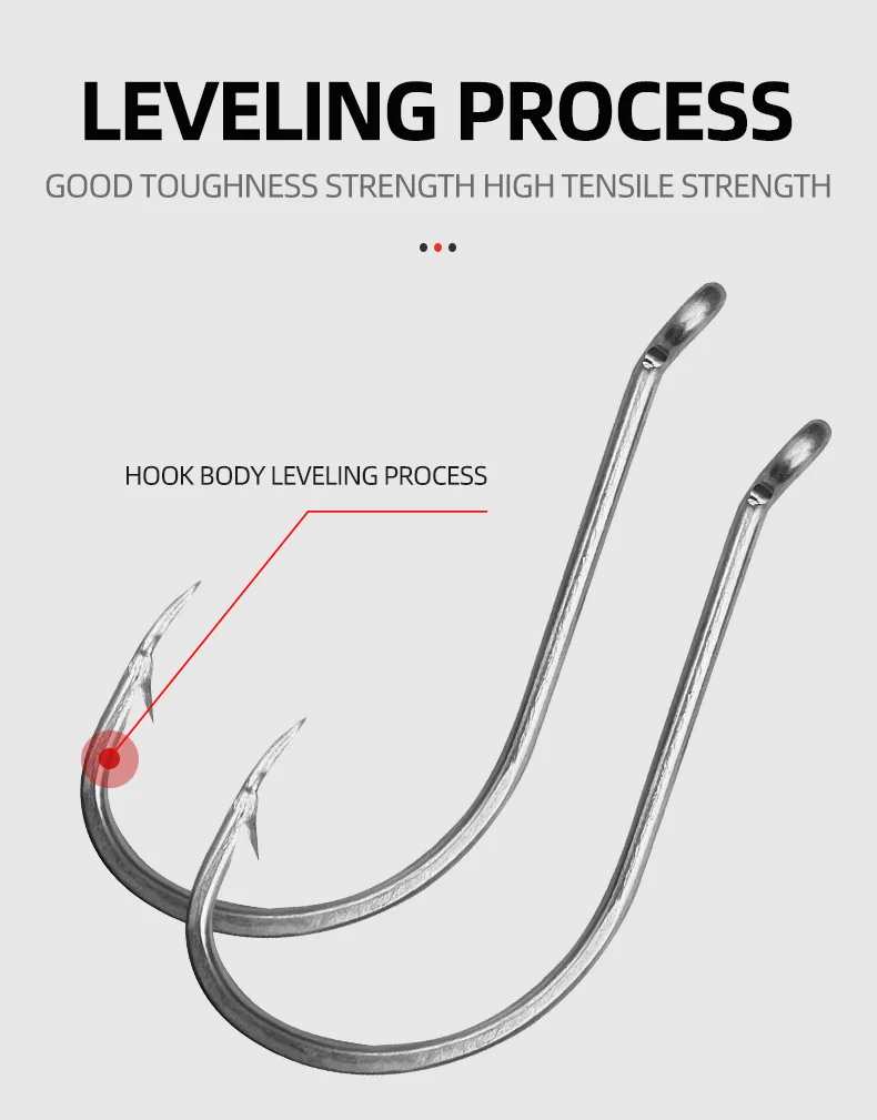 Ojos traseros en ángulo –Los ojos completamente cerrados protegen su hilo de pescar contra cortes y deslizamientos; El propósito del punto de compensación es bloquear la retirada del pez, para que no tengan forma.