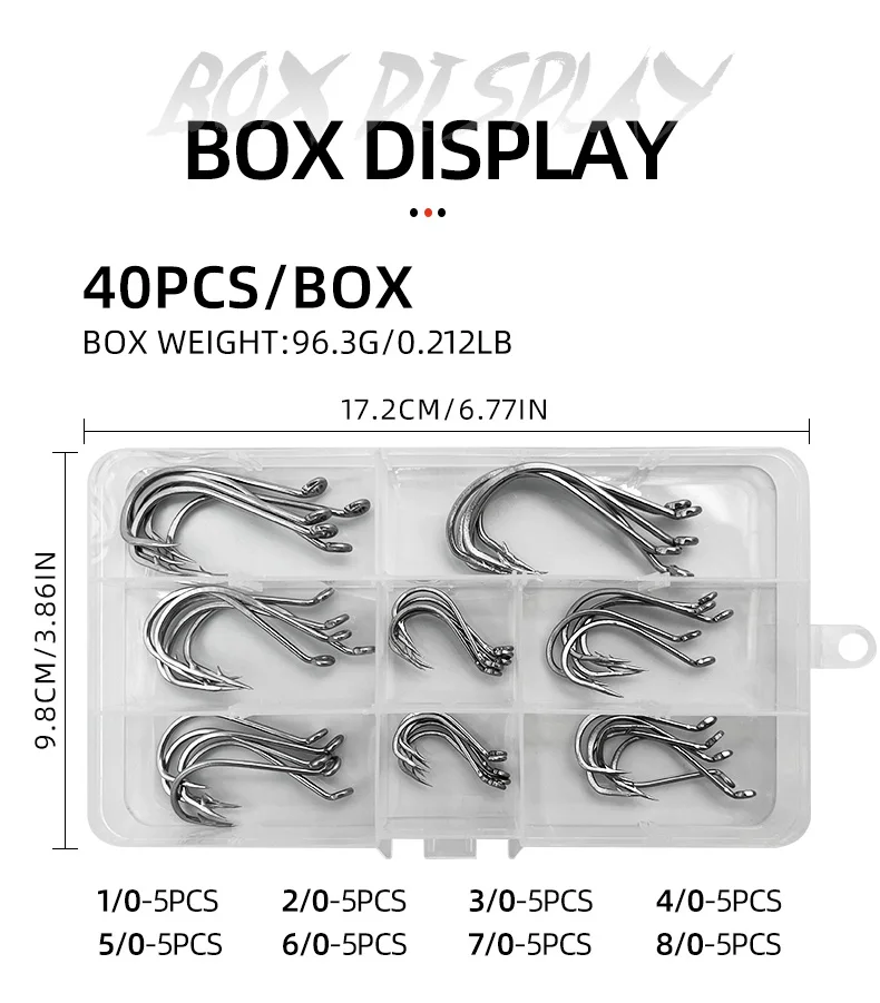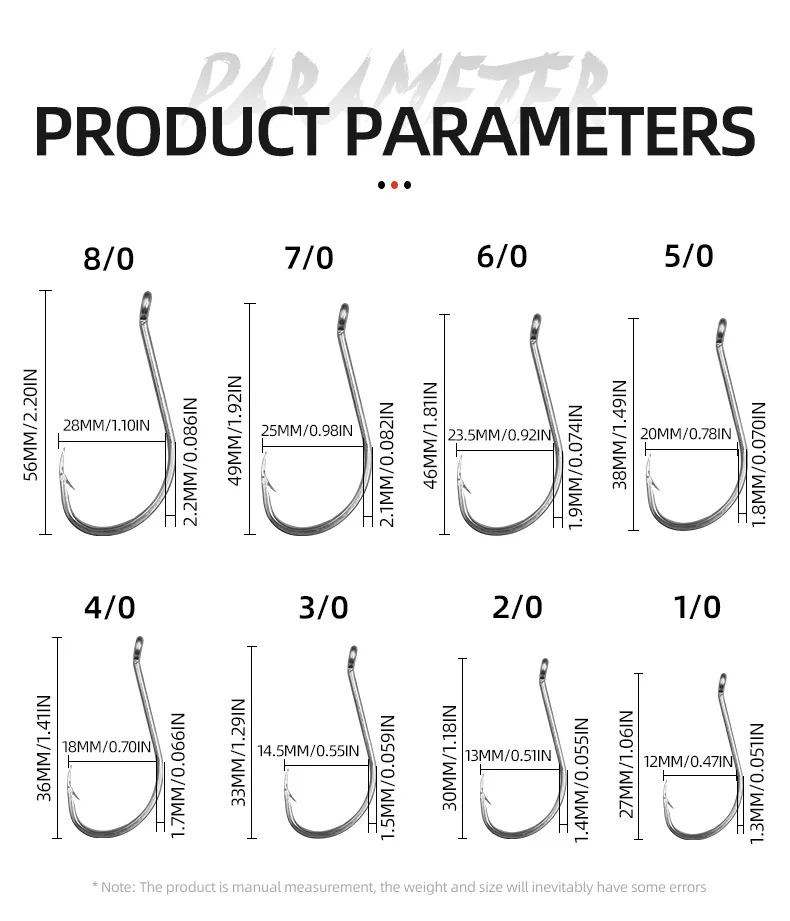 Gancho para anillo de agua de mar -Cuidadosamente forjado con 2X acero fuerte con alto contenido de carbono para proporcionar una mejor prevención de la oxidación y resistencia a la corrosión en el agua de mar y garantizar la dureza y resistencia del anzuelo.
