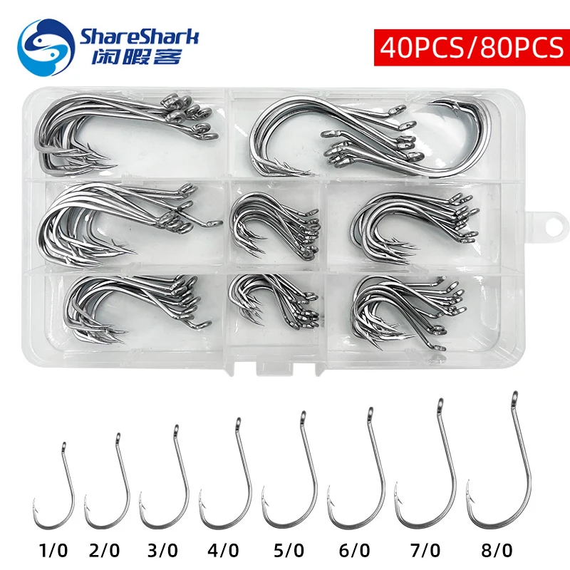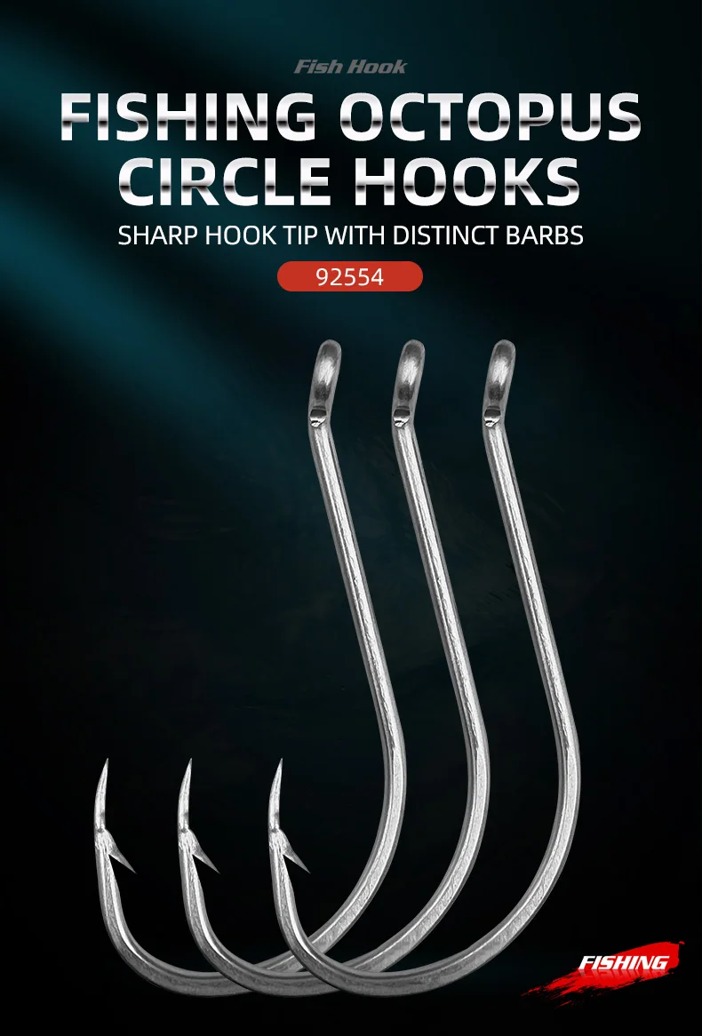40 unids/80 Uds caja 92554 gancho de pulpo de acero inoxidable barbilla boca torcida gancho Longline anzuelo de calamar señuelo pesca en el mar