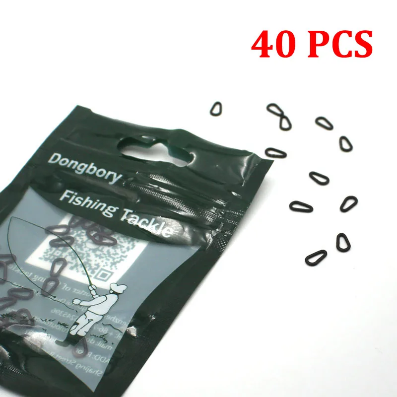 Accesorio de pesca de carpa de 40 piezas, anillos de aparejo, anillo de aparejo ovalado, enlace de gota de lágrima, aparejos de pesca de carpa, aparejo negro antideslumbrante