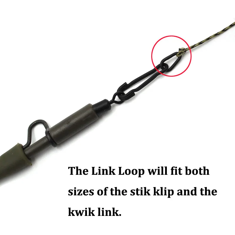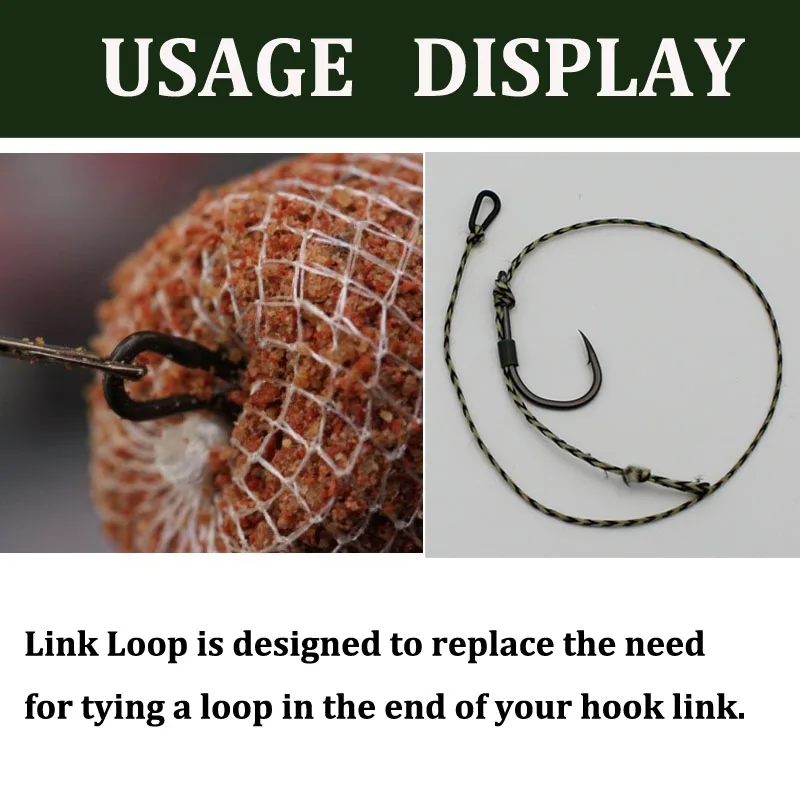 El bucle de enlace ha sido especialmente diseñado para reemplazar la necesidad de atar un bucle al final de su enlace de gancho. La ventaja obvia es la mayor resistencia debido al uso de un sonajero o nudo de sangre utilizado para atar el lazo de enlace al aparejo, especialmente cuando se utilizan materiales de enlace de monofilamento o gancho recubierto.