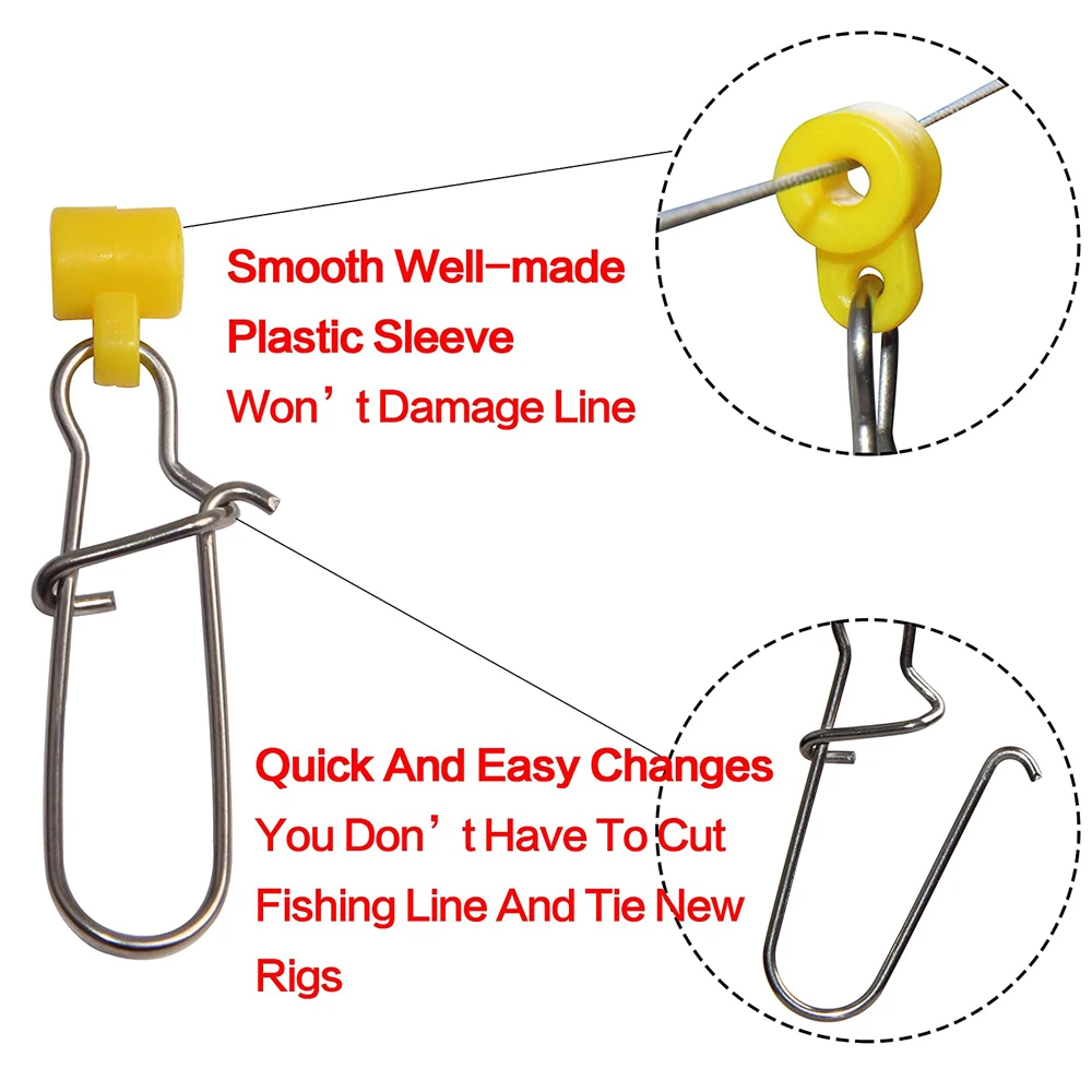 1.Conector de pesca resistente: ideal para capturar peces grandes en pesca de tipo más pesado, como pesca en agua salada, pesca de surf y pesca en el mar.Mezcla de diferentes colores y tamaños, más opciones