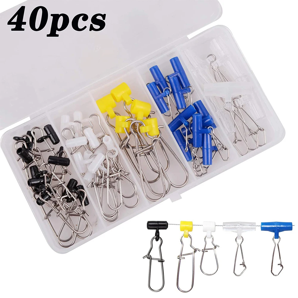 40 unids/caja plomo de pesca deslizante plomo deslizante con seguridad Snap alta resistencia para jig rig plomo conexión de peso aparejos de pesca