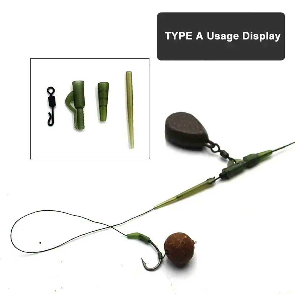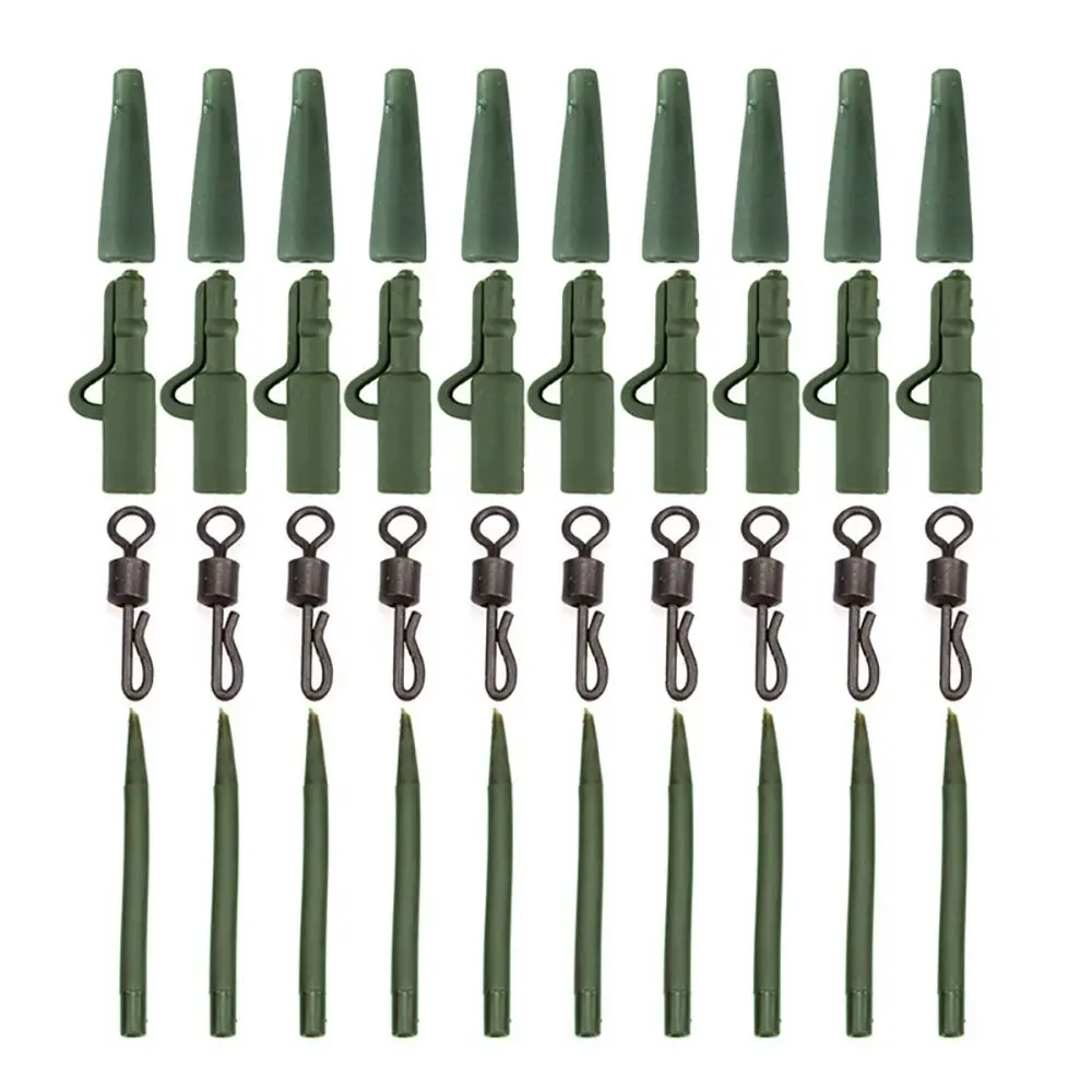 Brand new and high quality Material: Soft Rubber, Metal Size: Multi Sizes A: Plastic lead clip: 10 pcs (Translucent green / length:24 mm) B: Tail rubber: 10 pcs (Translucent green / length:19 mm ) C: Quick change swivels: 10 pcs (matt black / size 4 / length:17.5 mm) D: Anti-tangle sleeve: 10 pcs (Translucent green / length:40 mm ) Quantity: 40 PCS in total Features: This kit contain four kinds of necessary fishing tackle for angler to making Carp Rig ,It is really useful kit for angler. Notice: 1. The real color of the item may be slightly different from the pictures shown on the website caused by many factors such as brightness of your monitor and light brightness. 2. Please allow slight manual measurement deviation for the data. Thank for your understanding. 3. 1cm=0.39''. Package Included: 10x Tail Rubbers 10x Lead Clips 10x Quick Change Swivels (Size 4) 10x Anti-tangle Sleeves