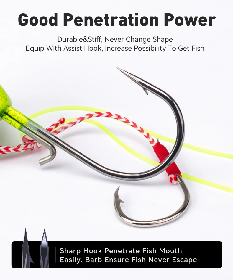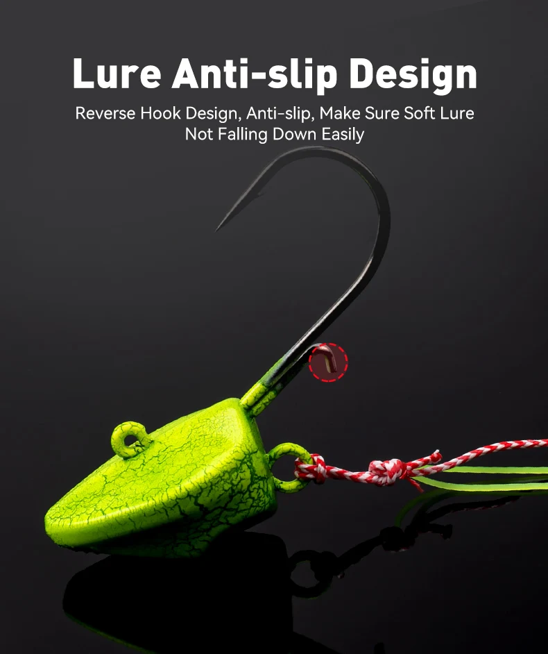 Diseño de señuelo antideslizante - - Diseño de invertido firmemente con gancho de enlace de señuelo suave, antideslizante, asegúrese de que el señuelo no se caiga fácilmente.