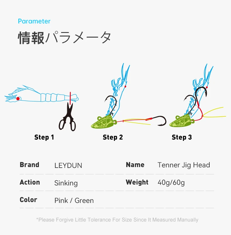 • Jig Tenya Madai:El diseño Tenya Madai Jig del señuelo de pesca caliente Leydun es perfecto para atraer peces con su movimiento y apariencia realistas.