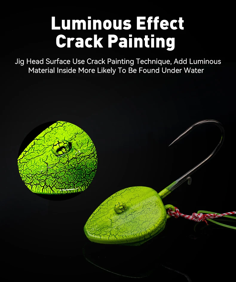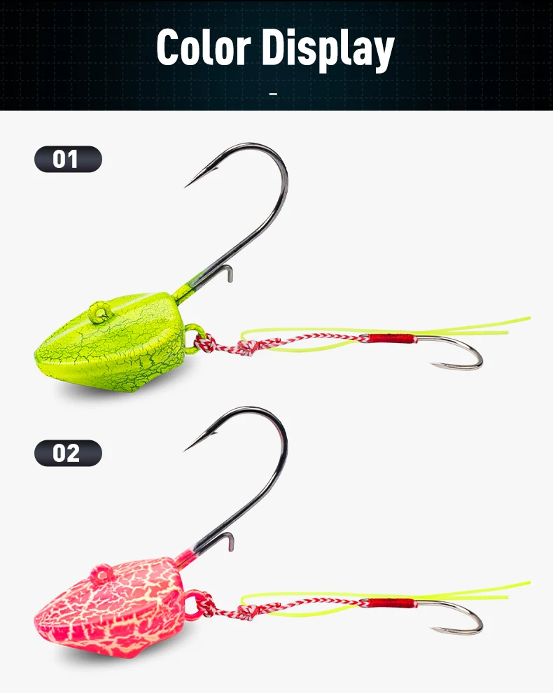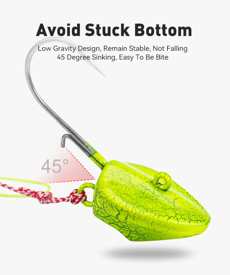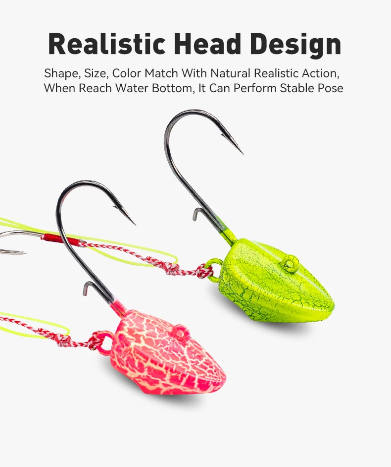 La cabeza de plantilla generalmente se usa con un señuelo blando, tiene una función de búsqueda de natación de todos los niveles, fácil de operar, imita a los camarones de peces pequeños. Estado de escape, realiza una dosis de natación natural.