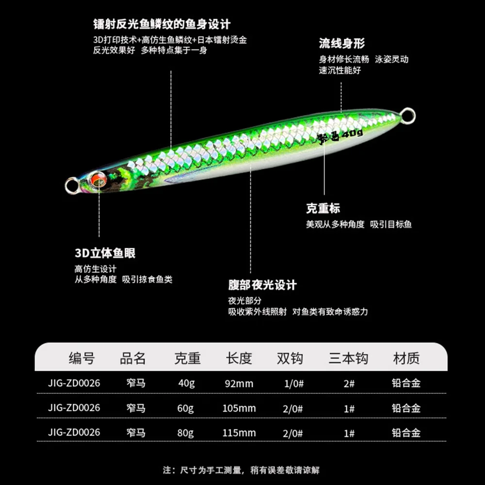 40g60g80g100g Shore Jigging cebo para peces pesca Vertical de agua salada Snapper atún lubina Wahoo caballa señuelo plantilla de Metal con gancho