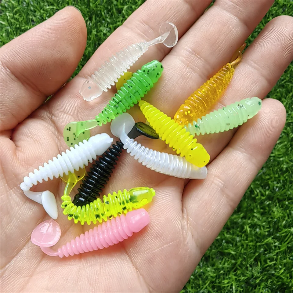 40mm 0.6g Soft Worm Lures with Screw Thread Body 20Pcs/box Micro Silicone Fishing Bait Wobbler