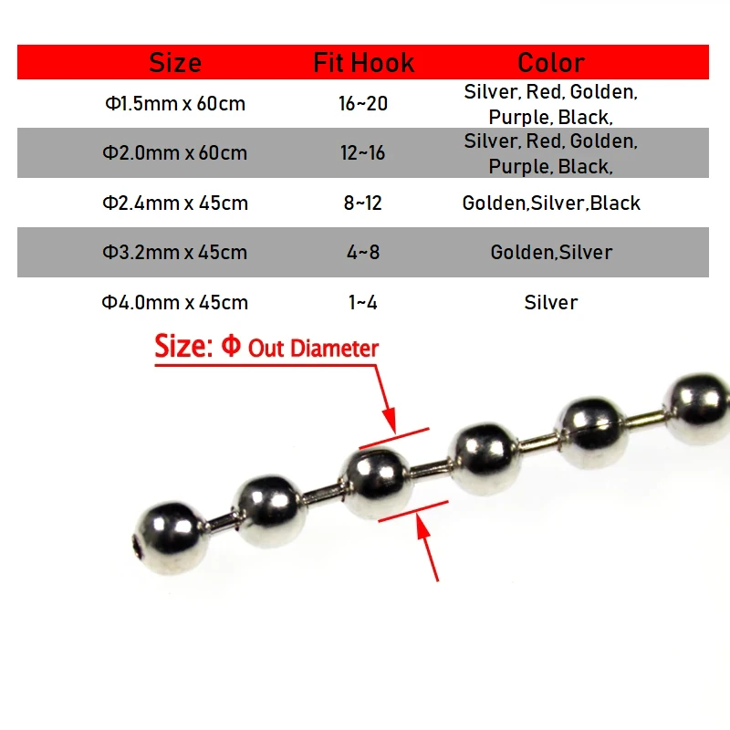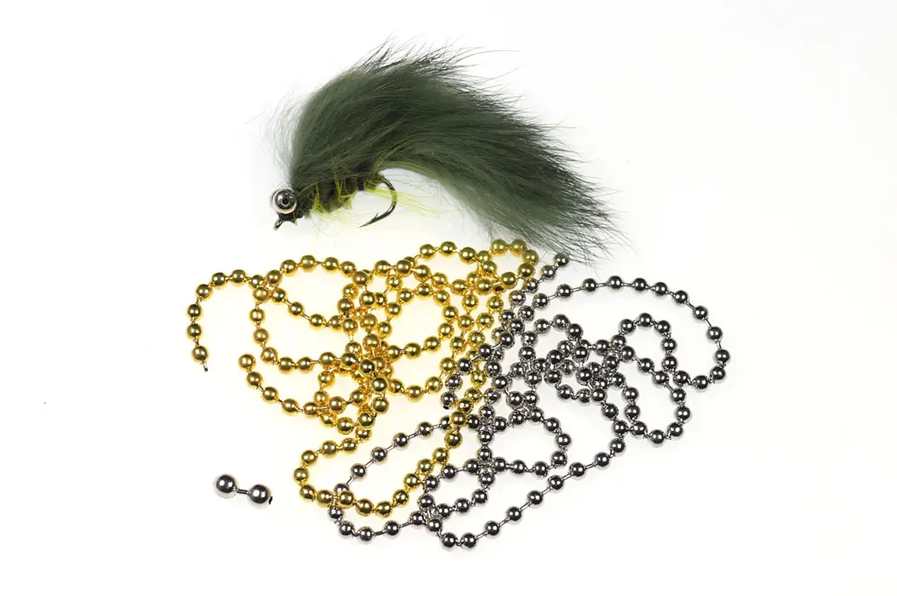 Bimoo 45cm 60cm Fly Tying Bead Chain Head Streamer Nymph Zonker Tying Bead Eyes Metal 2,4mm 3,2mm 4mm Gold Silver Fly Fishing Materials
