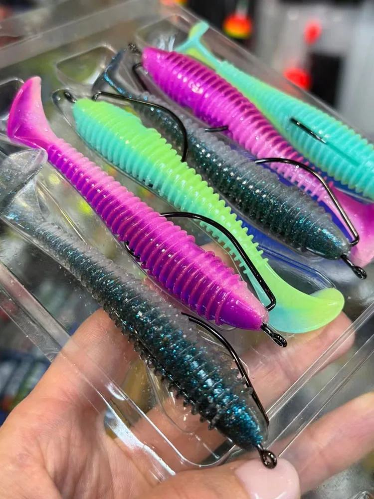 Kit de señuelos de pesca blandos, 45 Uds./34 Uds./60 Uds./65 Uds., juego de señuelos de silicona, gusano de cebo Artificial con manivela, anzuelo de cabeza, pececillo de lubina