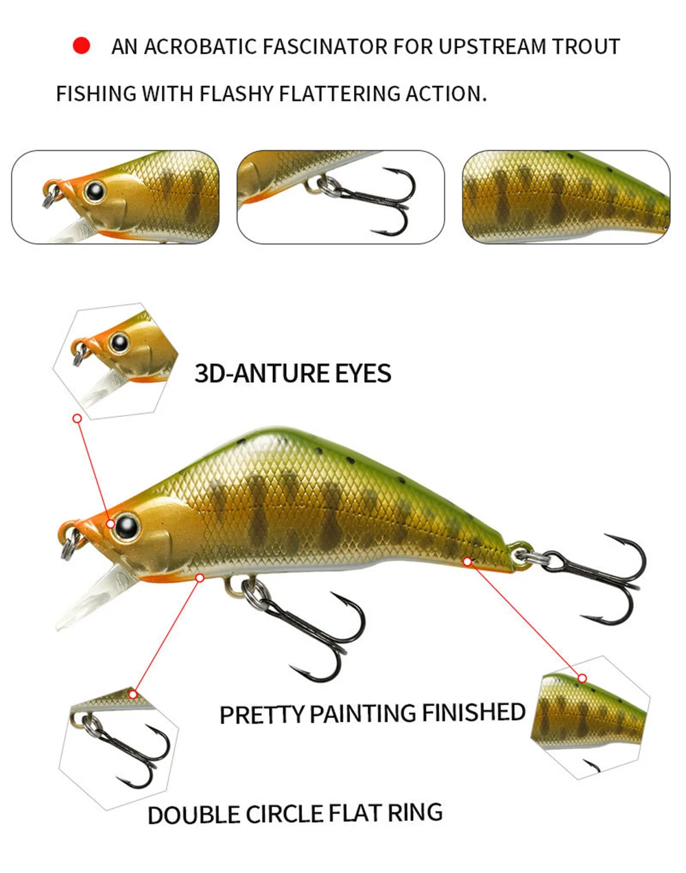 3. Los cebos tienen una pintura realista y ojos 3D vívidos, hacen que el cebo parezca peces reales nadando en el agua durante la pesca.