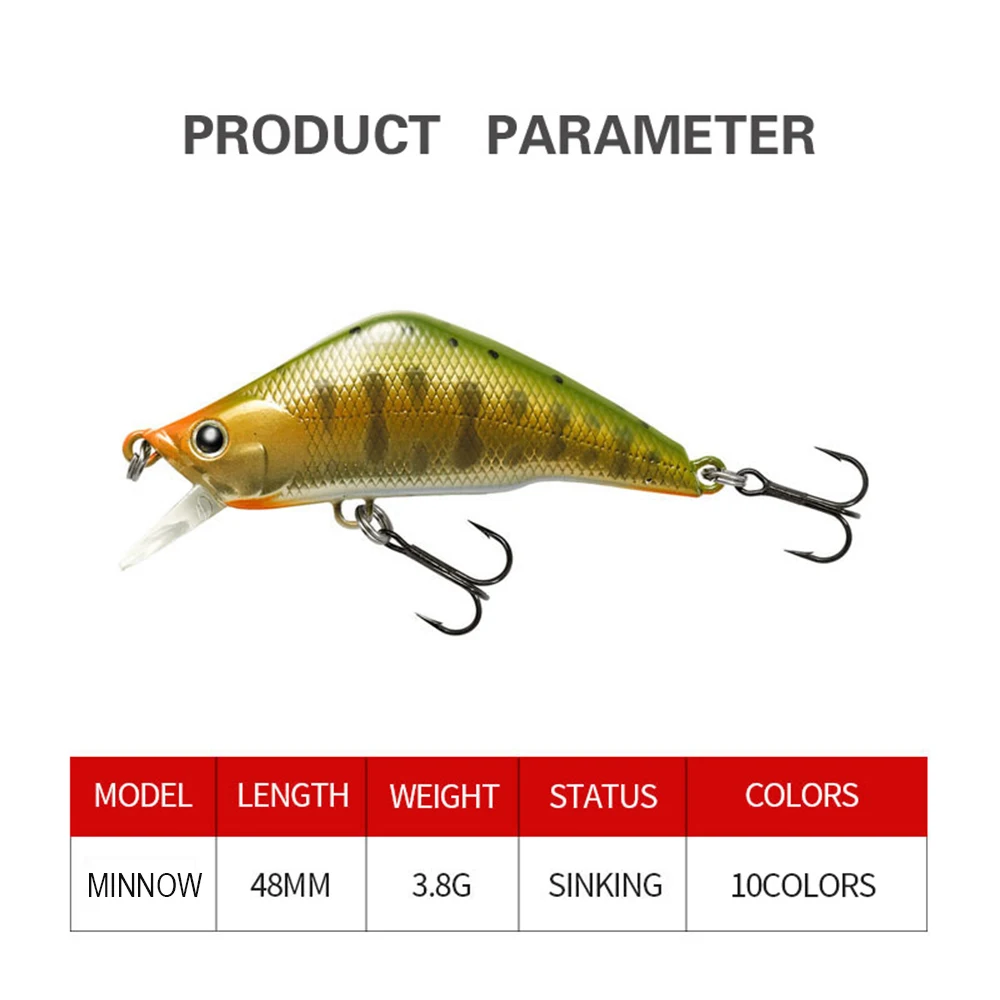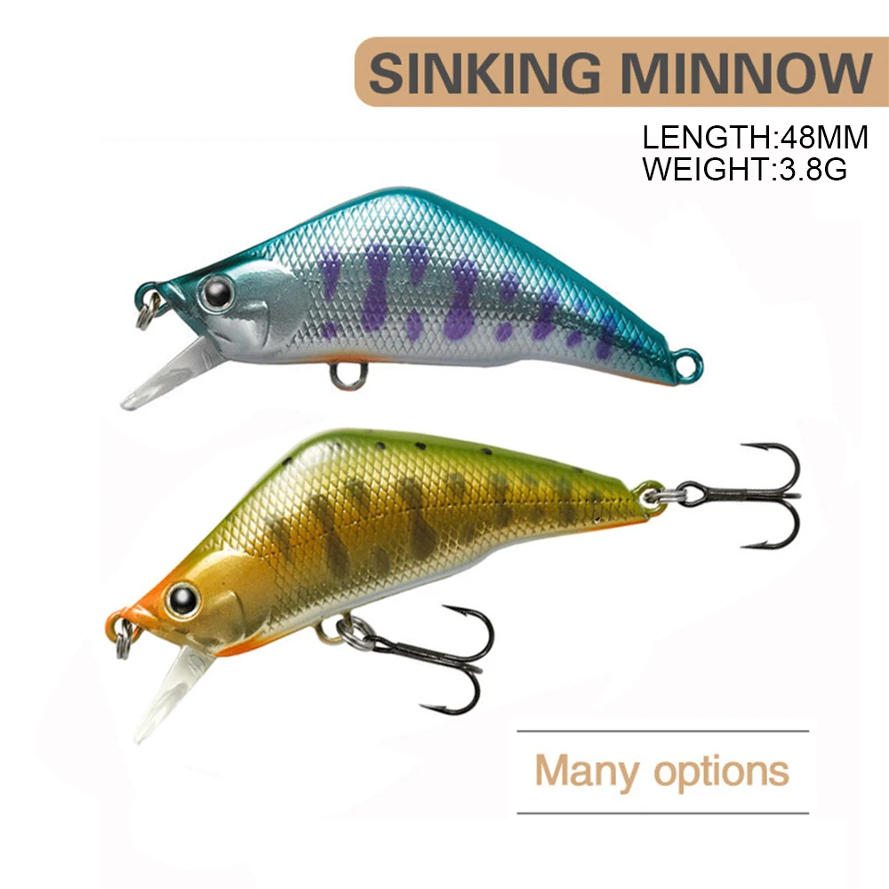 Señuelo de pesca de 4,8 cm y 3,8 g, Micro Minnow Wobbler TIM48S, cebo duro Artificial hundido, Jerkbait Swimbait, Mini flujo, trucha, lubina