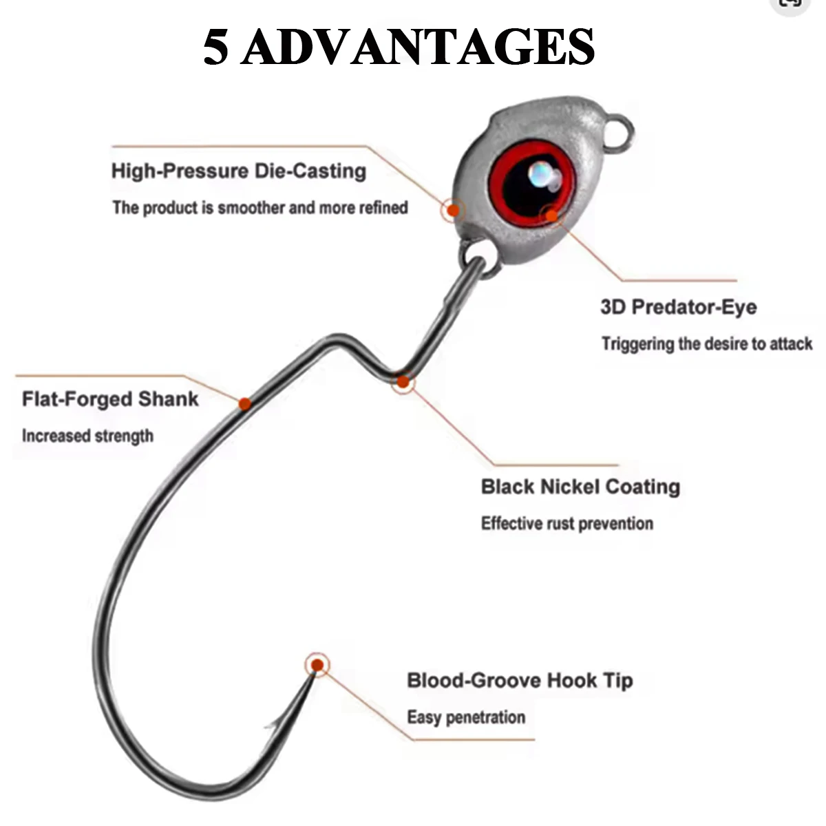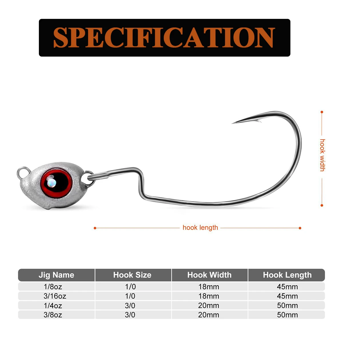 5/10 Uds. Cabezales de plantilla de ojo 3D 3,5 g/5 g/7 g/10 g/14 g-ganchos ponderados antienganches para pesca de lubina/truchuta en agua dulce y salada
