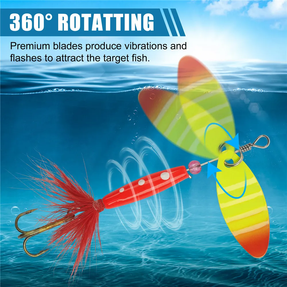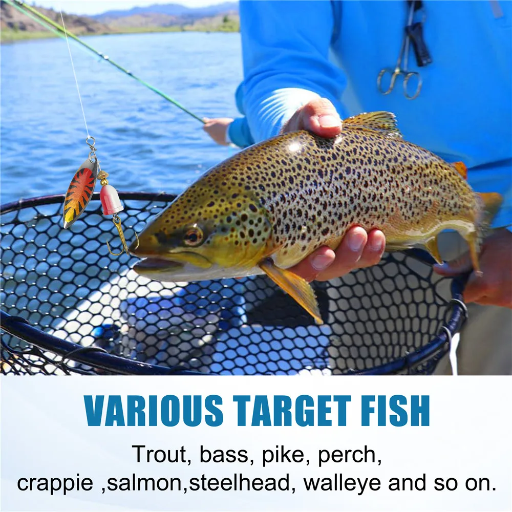 2. Ideal para señuelos de pesca Bass, Trucha, Walleye, Northern Pike y Salmón Spinner. Adecuado para muchos tipos de peces. Señuelos de pesca con colores vibrantes que dibujarán especies tanto de agua dulce como de agua salada, como Tilapia, pez mandarín y aparejos de pesca de lubina a rayas.