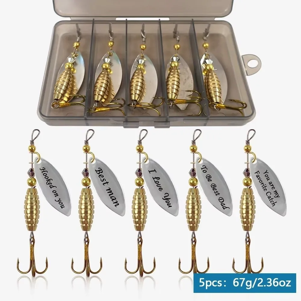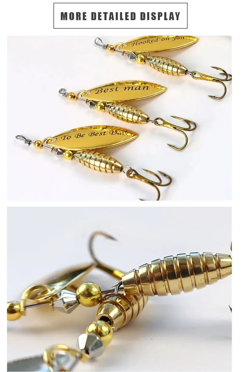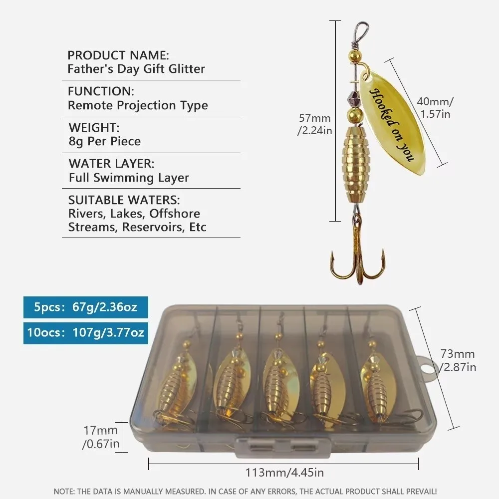 Features: 1.Metal Spoon Design: The leaf-shaped metal spoon spinner fishing lure produces noise and reflections when spinning in the water, effectively attracting fish. 2.Reflective Surface for Quick Attraction: The spoonbait crankbait features a highly reflective surface that enhances light reflection, increasing its attractiveness during fast spin. 3.Forward Weight for Easy Casting: The fishing wobbler is designed with forward weight distribution, allowing effortless long-distance casting and quick water slicing. 4.Dynamic Copper Weight: Equipped with copper weights and rolling beads that create sound upon collision, this artificial bait tempts large fish to attack. 5.Sharp Barbed Treble Hook: The hard bait is fitted with a sharp barbed treble hook for high penetration and strength, ensuring successful catches. 10pcs Boxed Metal Spoon Spinner Fishing Lure with Treble Hook Spoonbait Crankbaits Fishing Wobblers Rotating Spoon Kit Fishing Gift for Dad Father Features: 1.Metal Spoon Design: The leaf-shaped metal spoon spinner fishing lure produces noise and reflections when spinning in the water, effectively attracting fish. 2.Reflective Surface for Quick Attraction: The spoonbait crankbait features a highly reflective surface that enhances light reflection, increasing its attractiveness during fast spin. 3.Forward Weight for Easy Casting: The fishing wobbler is designed with forward weight distribution, allowing effortless long-distance casting and quick water slicing. 4.Dynamic Copper Weight: Equipped with copper weights and rolling beads that create sound upon collision, this artificial bait tempts large fish to attack. 5.Sharp Barbed Treble Hook: The hard bait is fitted with a sharp barbed treble hook for high penetration and strength, ensuring successful catches. Specification: Origin: Mainland China Size: Box 113x73mm 4.45x2.87inch Bait 57mm/2.24inch Material: Metal Weight: 8g Package Included: 5/10pcs Spoon Lures