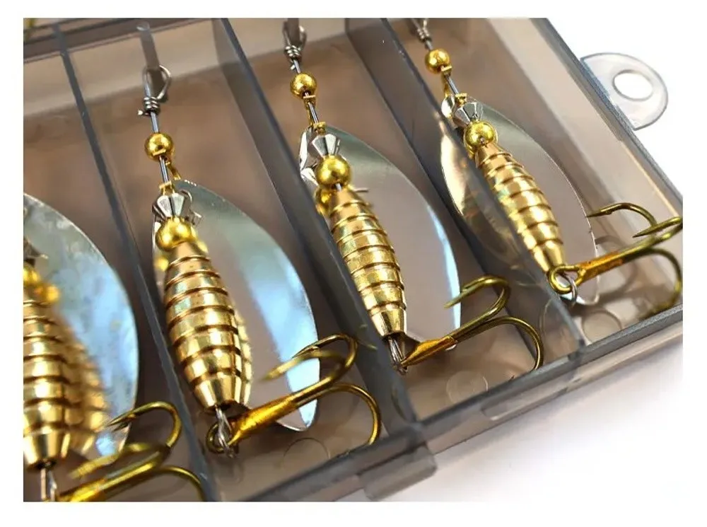 Características: 1. Diseño de cuchara de metal: el señuelo de pesca giratorio con cuchara de metal en forma de hoja produce ruido y reflejos al girar en el agua, atrayendo eficazmente a los peces. 2.Superficie reflectante para una atracción rápida: el crankbait spoonbait presenta una superficie altamente reflectante que mejora el reflejo de la luz, aumentando su atractivo durante el giro rápido. 3. Peso hacia adelante para lanzar fácilmente: el wobbler de pesca está diseñado con distribución del peso hacia adelante, lo que permite lanzar a larga distancia sin esfuerzo y un corte rápido del agua. 4.Peso de cobre dinámico: Equipado con pesos de cobre y cuentas rodantes que crean sonido en caso de colisión, este cebo artificial tienta peces grandes a atacar. 5. Anzuelo triple con púas afiladas: el cebo duro está equipado con un anzuelo triple con púas afiladas para una alta penetración y resistencia, asegurando capturas exitosas. 10 Uds. Cuchara de Metal en caja, señuelo de pesca Spinner con anzuelo triple, Crankbaits, Wobblers de pesca, Kit de cuchara giratoria, regalo de pesca para papá y padre Características: 1. Diseño de cuchara de metal: el señuelo de pesca giratorio con cuchara de metal en forma de hoja produce ruido y reflejos al girar en el agua, atrayendo eficazmente a los peces. 2.Superficie reflectante para una atracción rápida: el crankbait spoonbait presenta una superficie altamente reflectante que mejora el reflejo de la luz, aumentando su atractivo durante el giro rápido. 3. Peso hacia adelante para lanzar fácilmente: el wobbler de pesca está diseñado con distribución del peso hacia adelante, lo que permite lanzar a larga distancia sin esfuerzo y un corte rápido del agua. 4.Peso de cobre dinámico: Equipado con pesos de cobre y cuentas rodantes que crean sonido en caso de colisión, este cebo artificial tienta peces grandes a atacar. 5. Anzuelo triple con púas afiladas: el cebo duro está equipado con un anzuelo triple con púas afiladas para una alta penetración y resistencia, asegurando capturas exitosas. Especificación: Origen: China continental Tamaño: Caja 113x73 mm 4,45x2,87 pulgadas Cebo 57 mm/2,24 pulgadas Material: Metal Peso: 8 g Paquete incluido: Señuelos de cuchara de 5/10 piezas