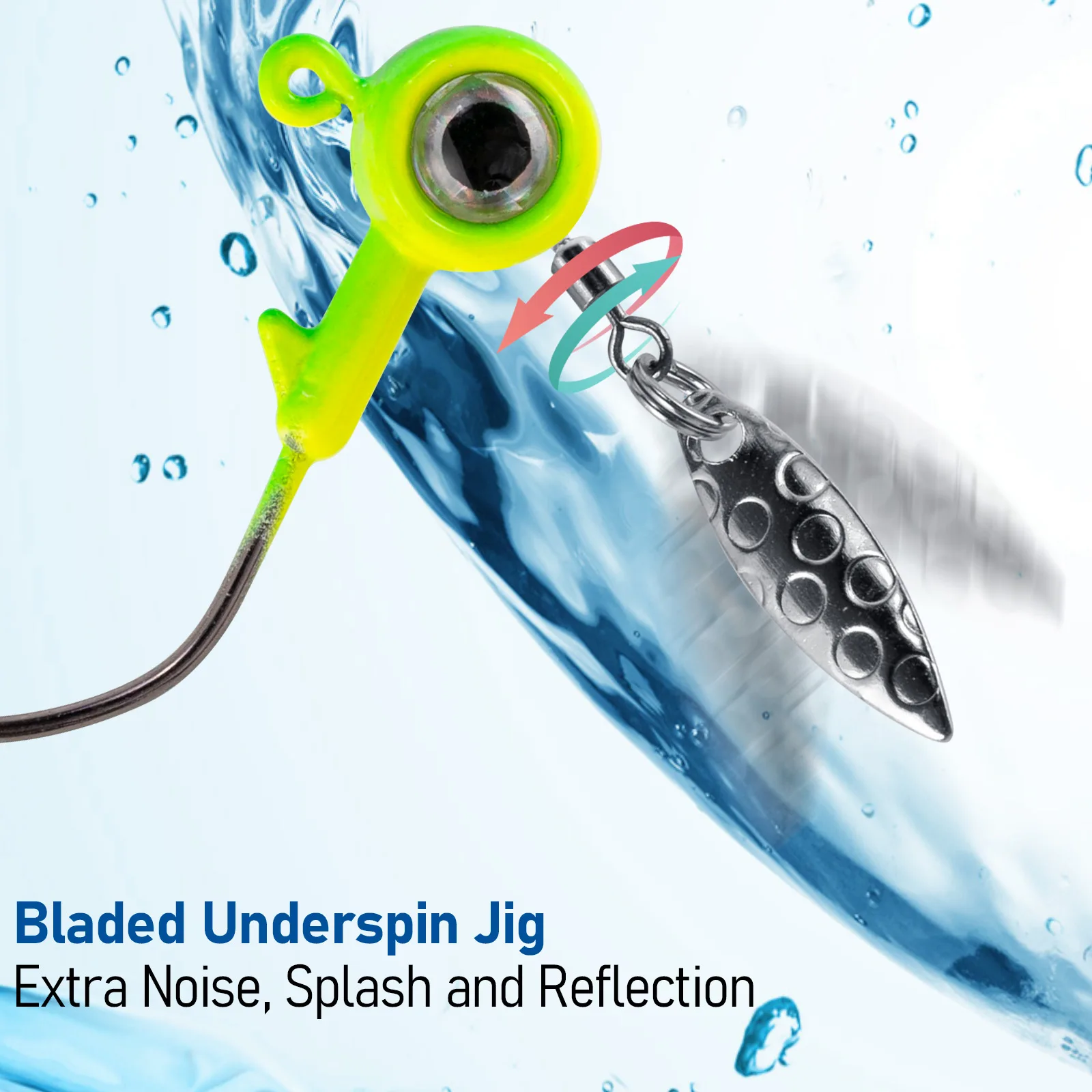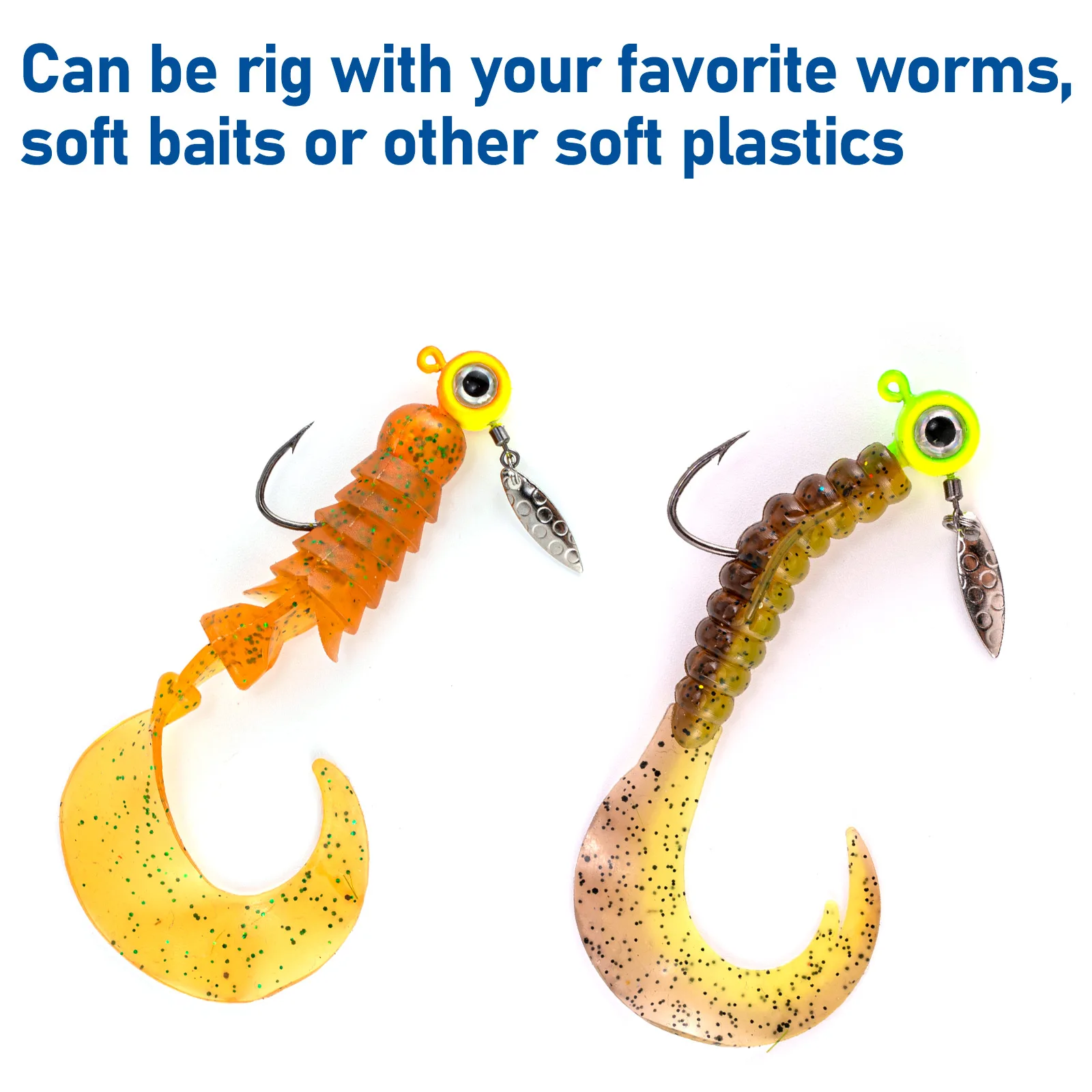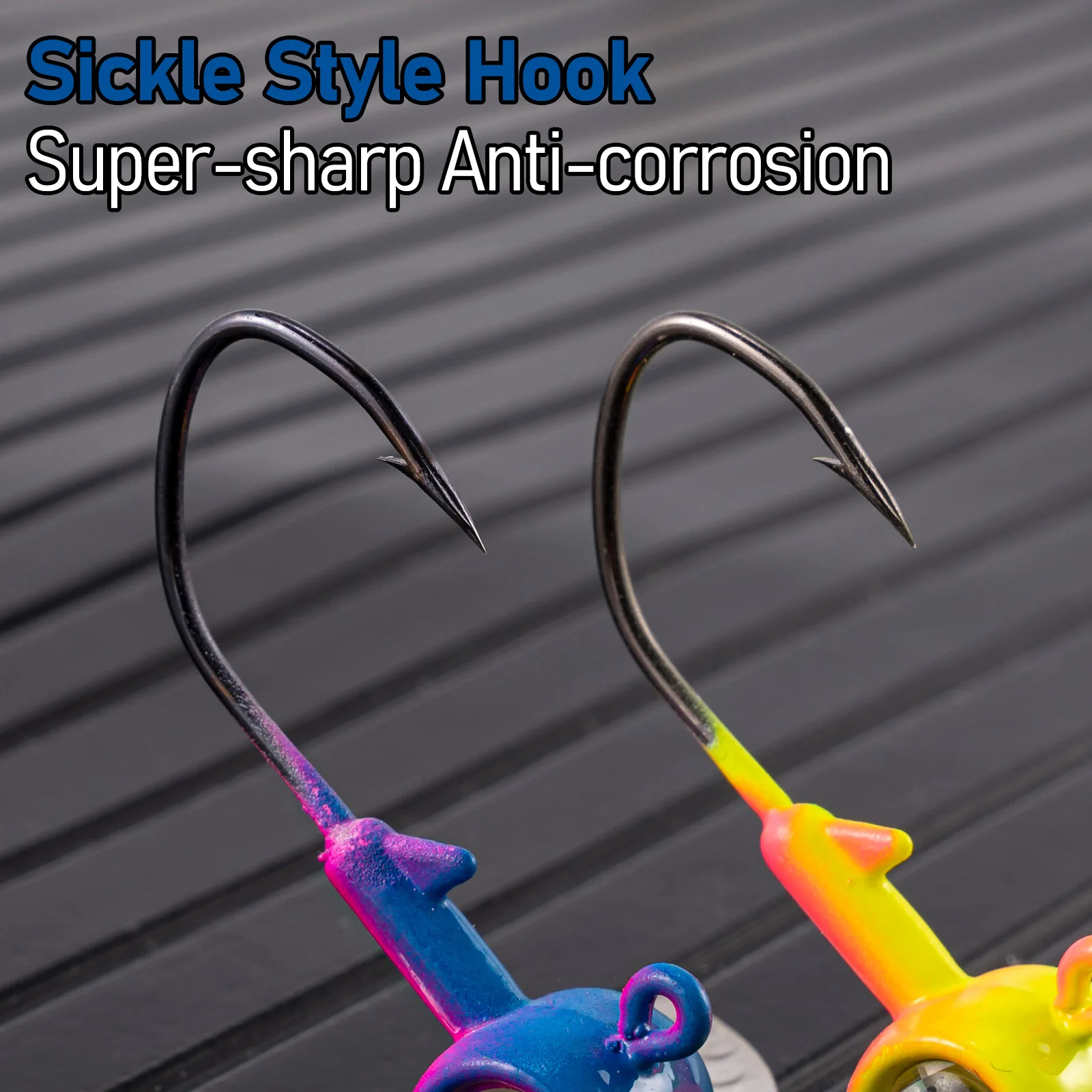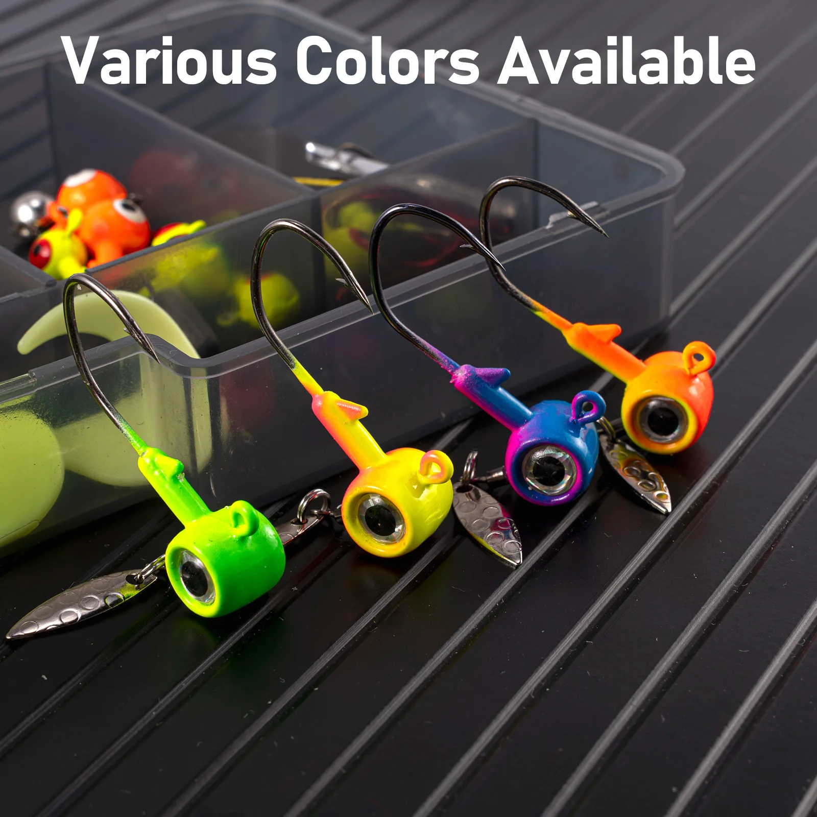 5.Cantidad: Paquete de 10; Tamaño: 1/32 oz; 1/16 oz; 1/8 oz; 3/16 oz; 1/4 oz; 3/8 oz; 2/5 oz; 1/2 oz. Perfecto para capturar una variedad de peces depredadores de boca pequeña, como perca, tipo de pez, bluegill, trucha y lubina blanca, etc.